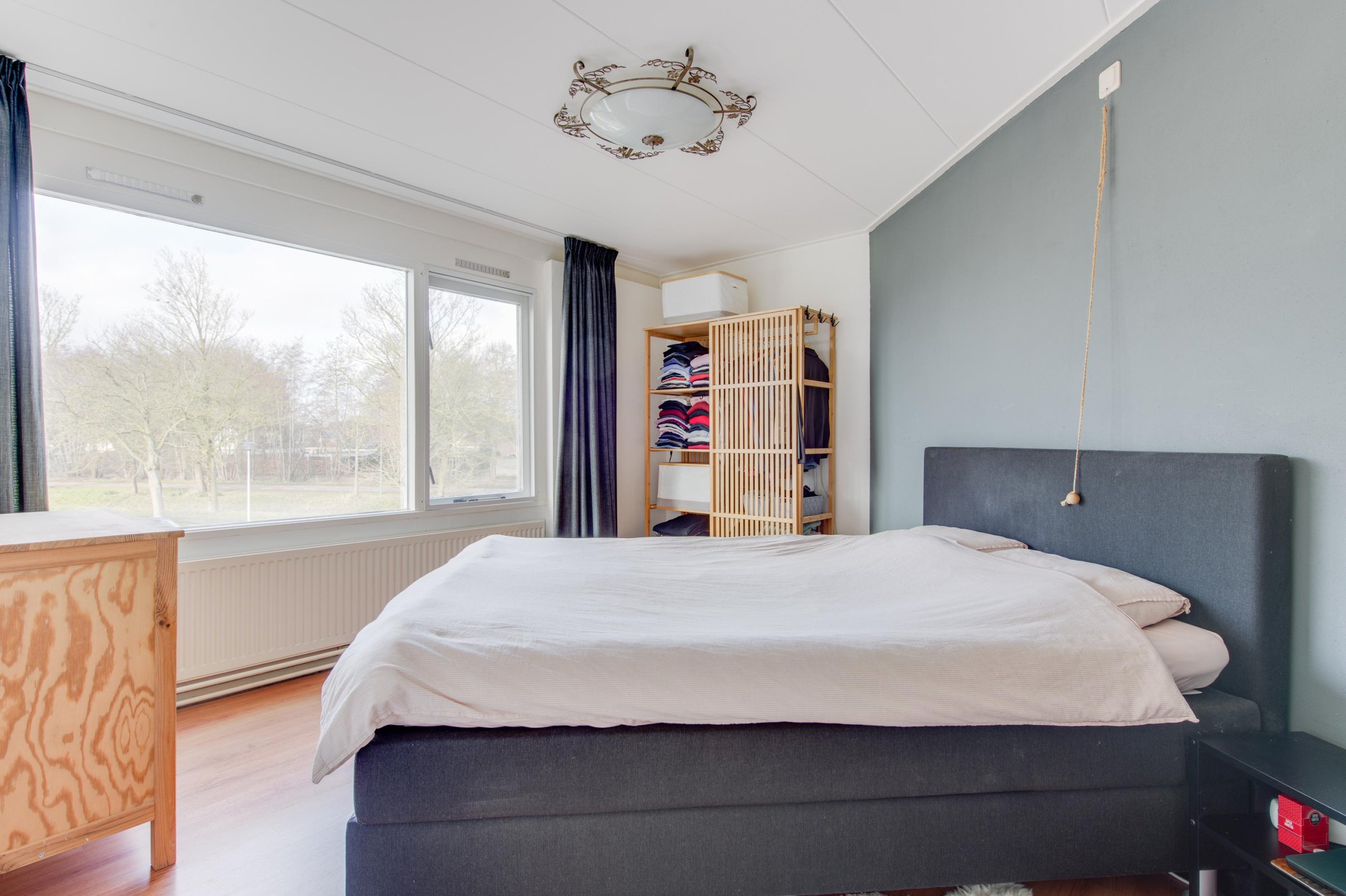 Slaapkamer 2 heeft een schuine wand, wat zorgt voor een speelse en leuke indeling en ook hier is het raam voorzien van warmte werende folie.