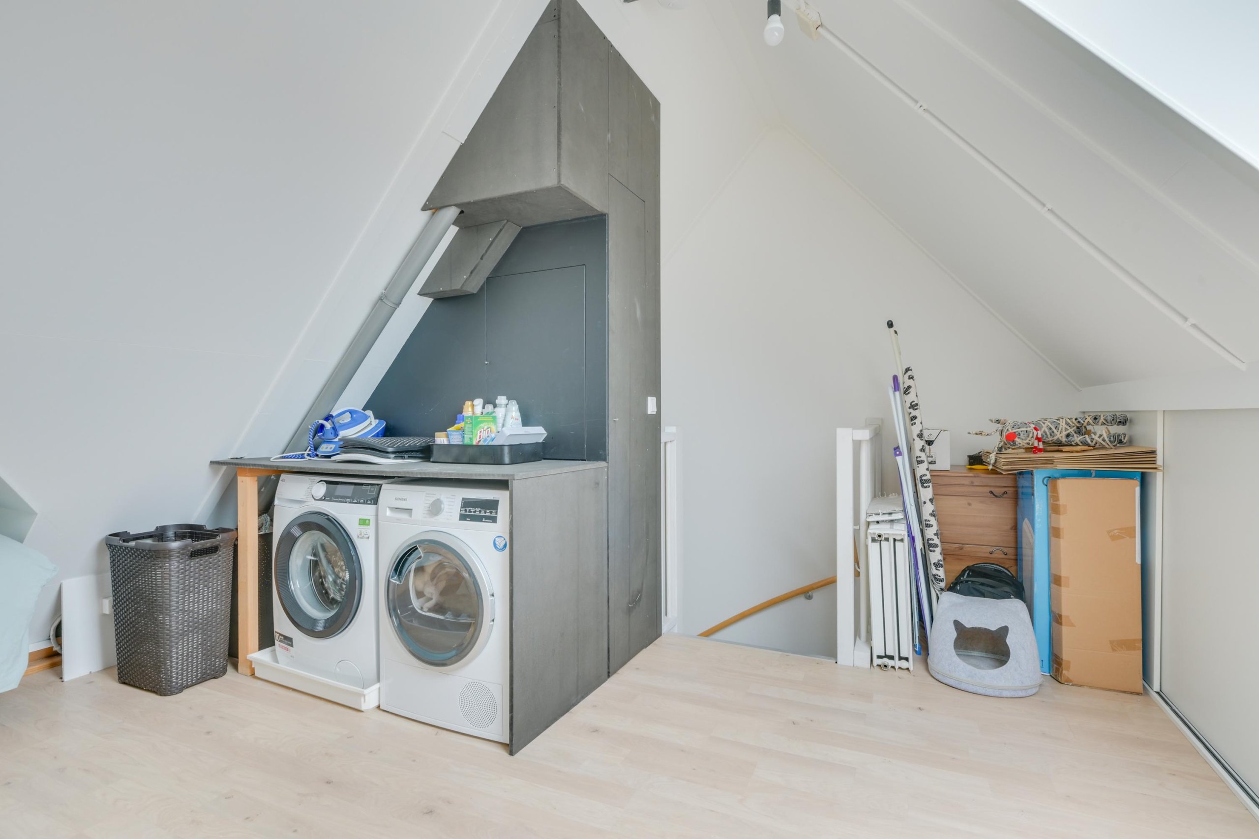 Via een vaste trap is de tweede etage bereikbaar. Deze etage herbergt een vierde slaapkamer, opbergruimte en de ruimte voor de CV ketel en de wasmachine aansluiting.