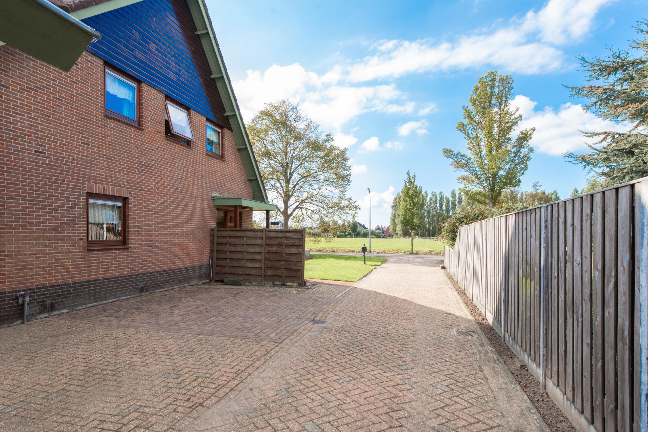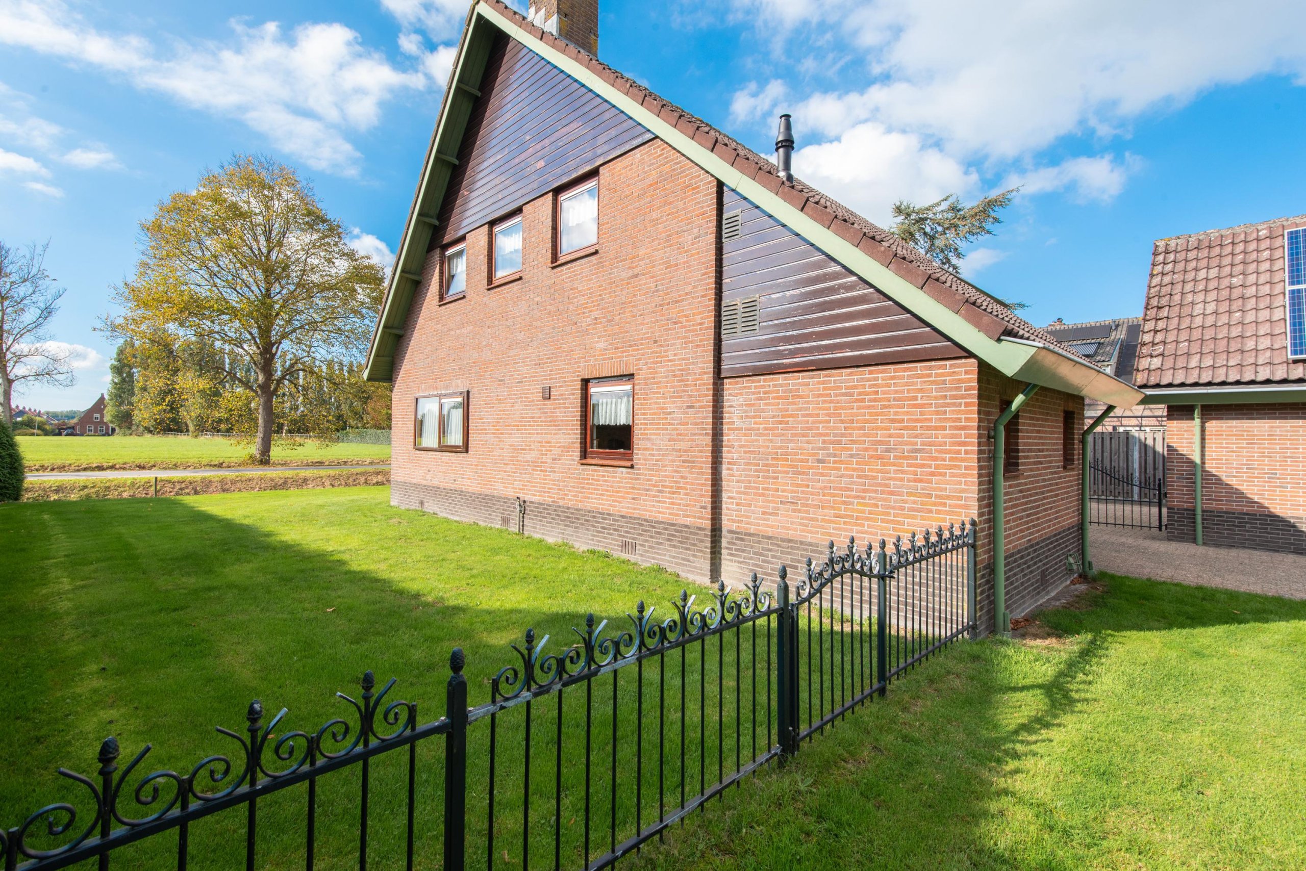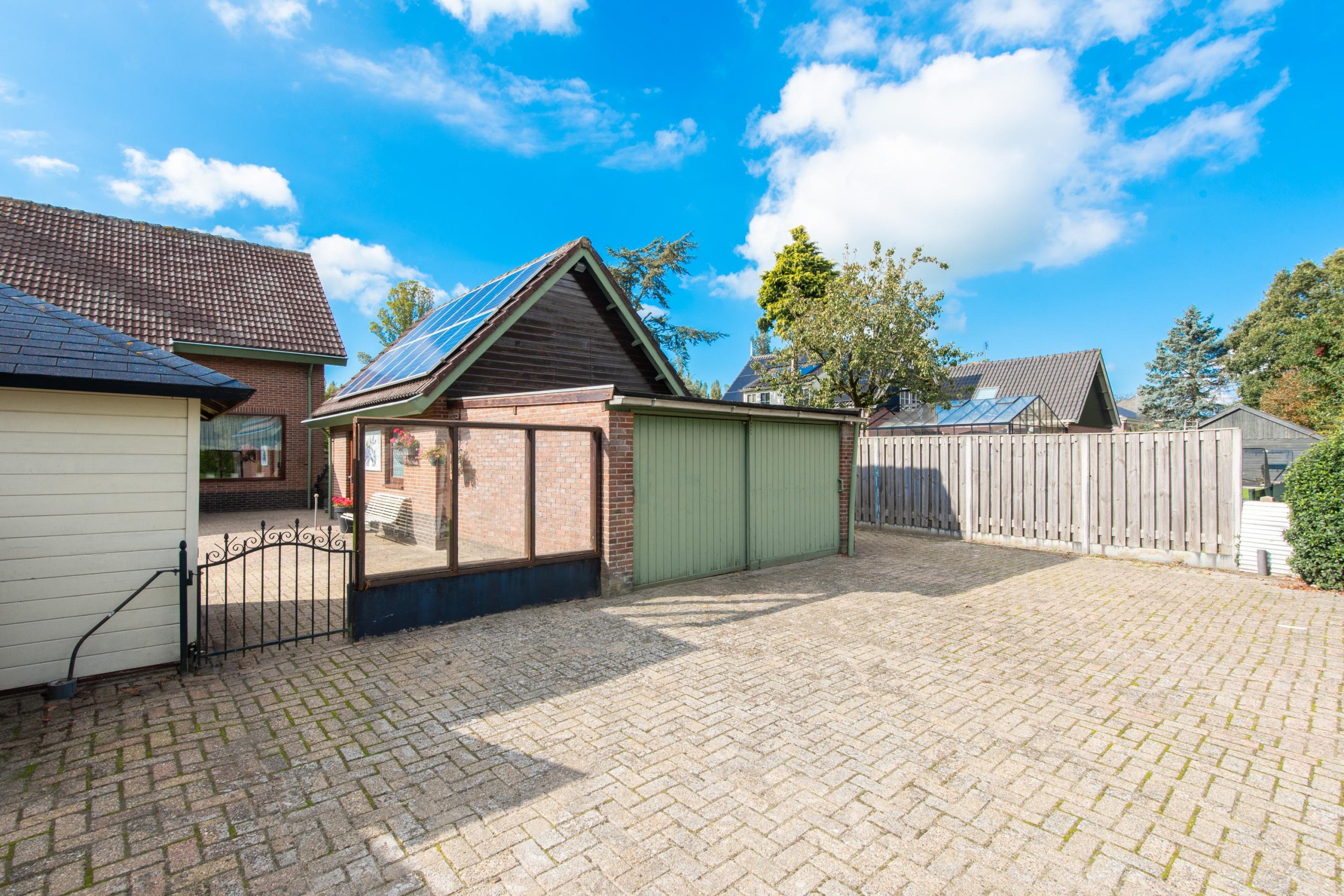 Links naast het huis is het oprijpad gesitueerd. Een heerlijk ruim pad met ruimte om meerdere auto’s te parkeren en de mogelijkheid om met de auto achter op het terrein te komen. Ideaal voor de ZZP-er of kleine ondernemer die de opslagruimte of het erf zakelijk wenst te gebruiken. De vrijstaande garage is voorzien van een vliering voor extra opslagruimte. In de garage is elektra aanwezig inclusief krachtstroom en de omvormer van de zonnepanelen. Achter de garage is een extra berging gerealiseerd en tot slot staat er in de tuin een fantastische kas van ca 30m2 waar de hobbykweker zich naar hartenlust kan uitleven. De enorme tuin bied voldoende ruimte om te spelen, als siertuin aan te leggen of om wat kleinvee te houden.