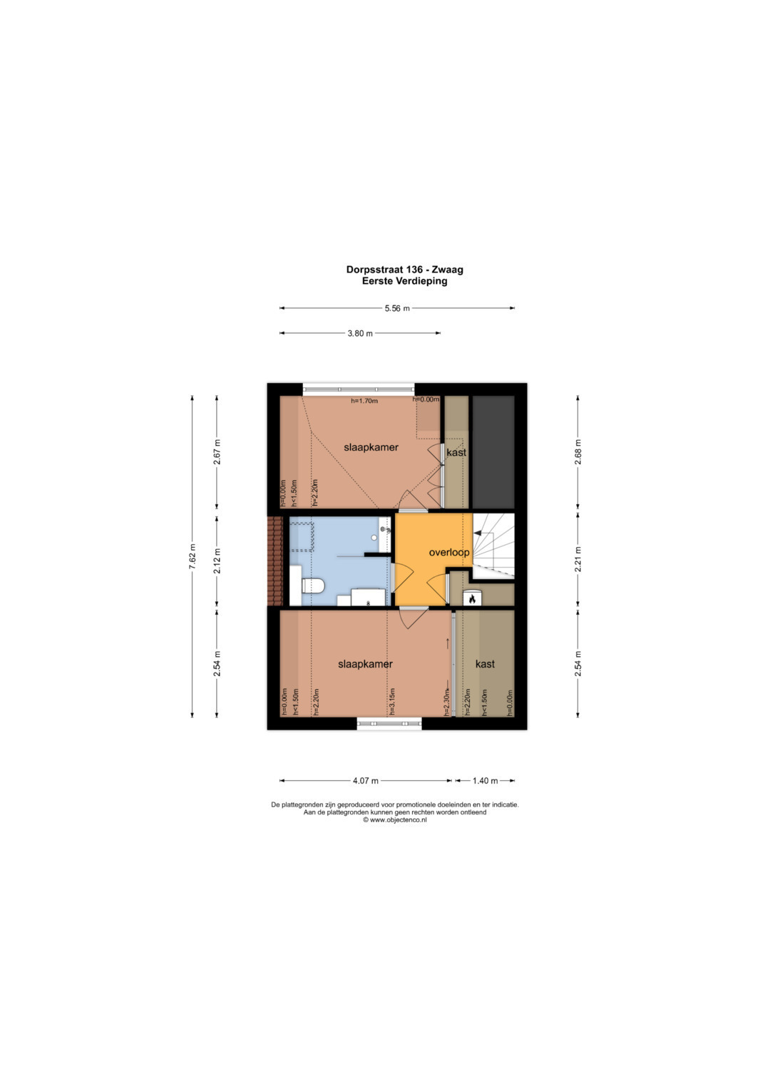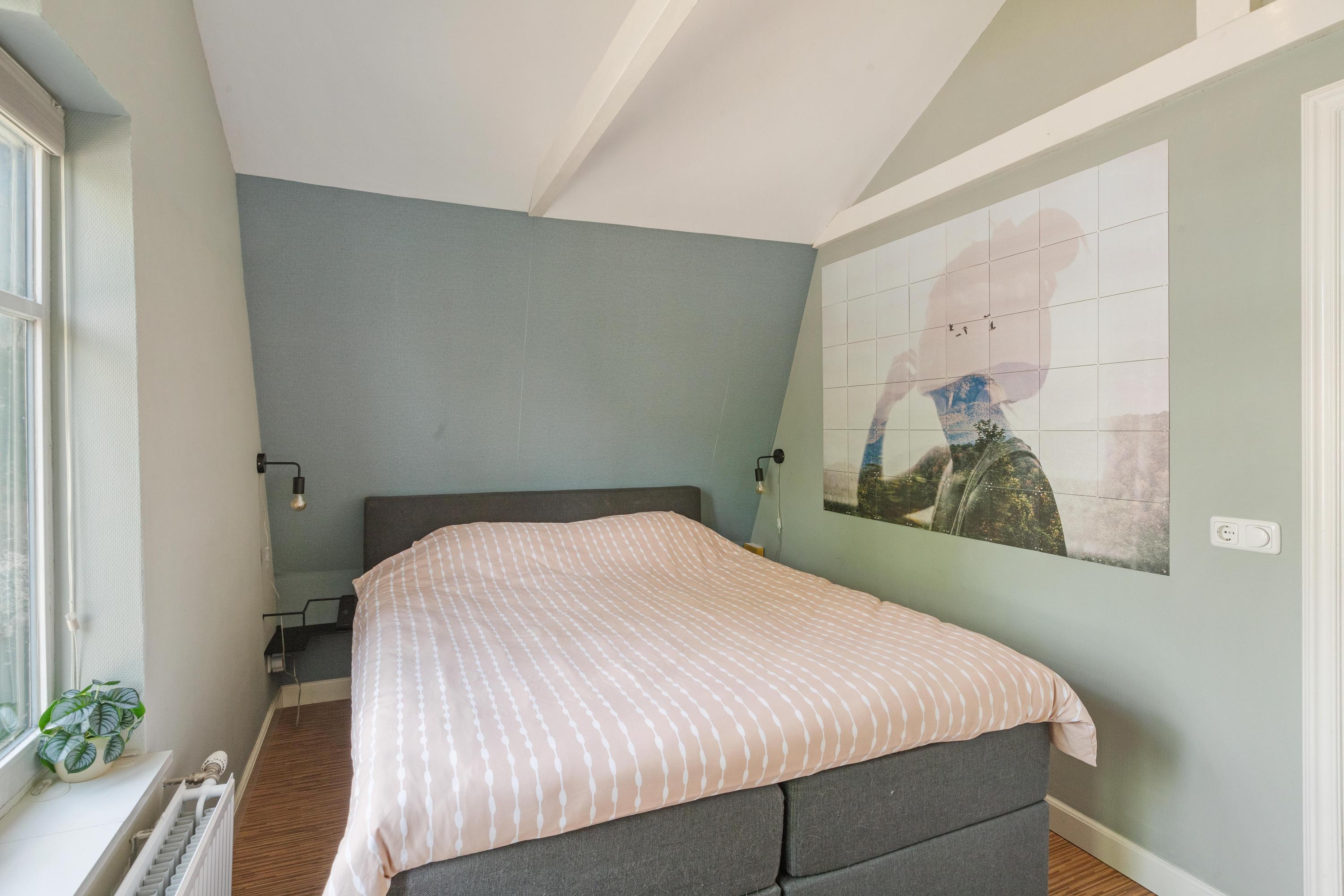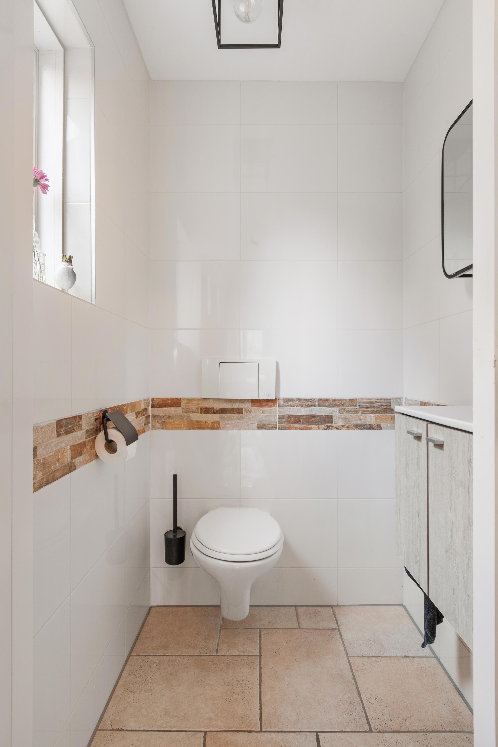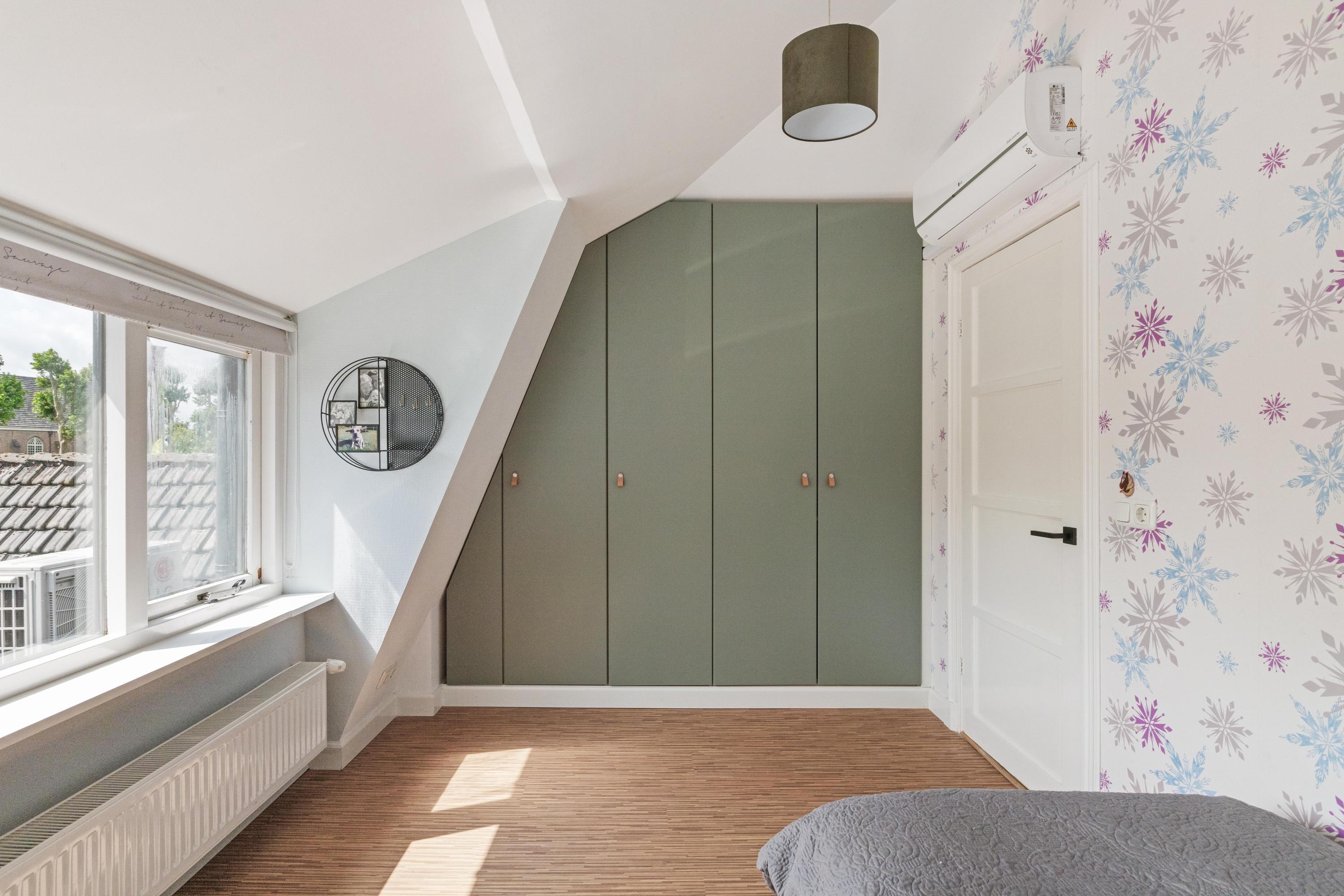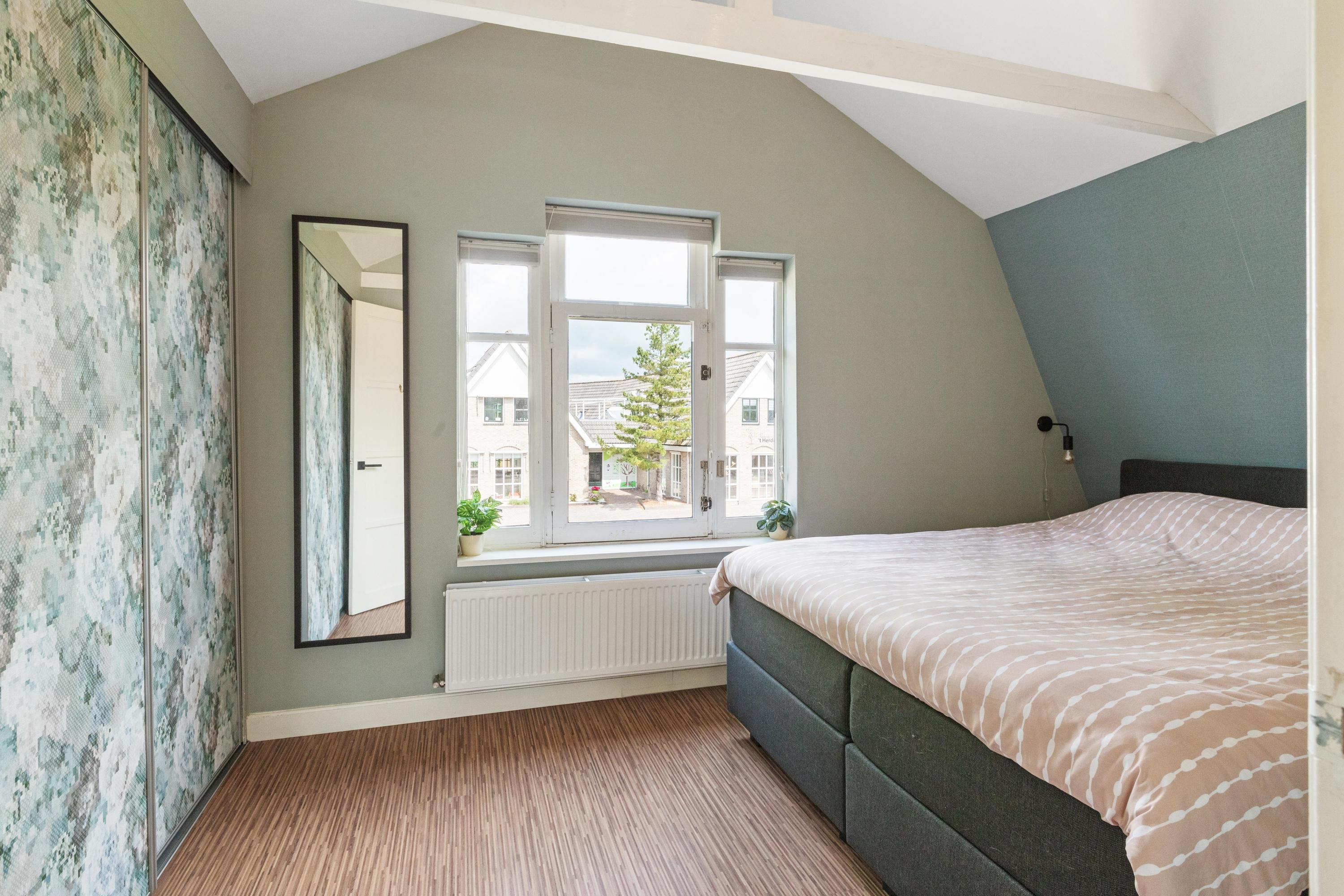 Eerste verdieping: Op de verdieping vind je twee slaapkamers, elk met een vaste kast. De slaapkamer aan de achterzijde is voorzien van een airco. De badkamer is luxe en modern uitgevoerd met vloerverwarming, een inloopdouche, toilet, wastafelmeubel, designradiator, spots en een dakraam voor extra daglicht en natuurlijke ventilatie. Verder tref je op de verdieping de cv-ruimte.