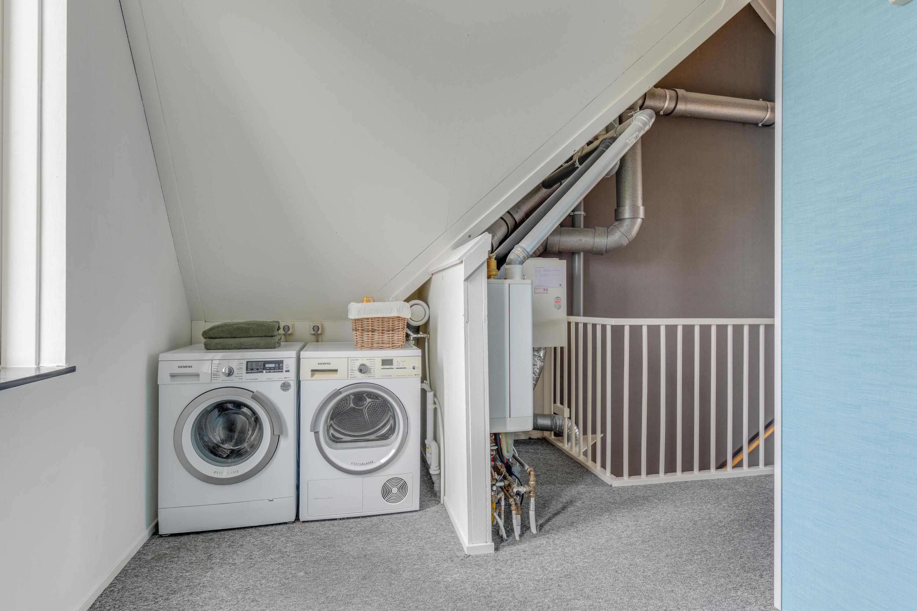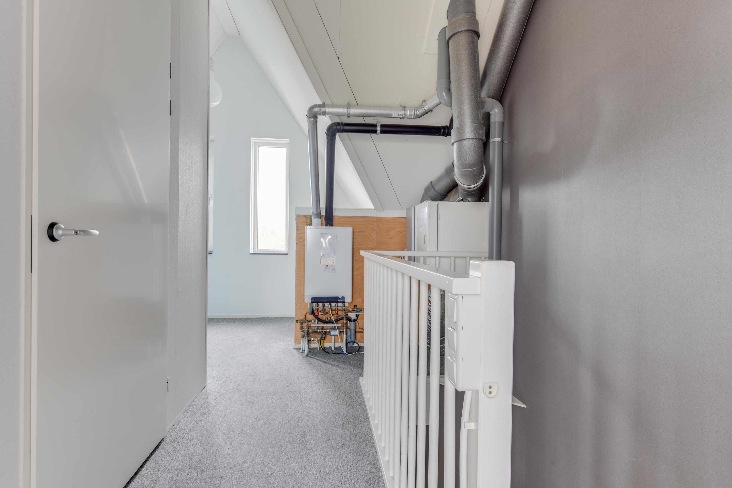 Ruime overloop met cv-opstelling, WTW-opstelling, de boiler voor de zonnecollector en de wasmachine aansluiting. Verder tref je op deze verdieping een praktische bergruimte en een vierde, ruime slaapkamer met dakraam en laminaatvloer.