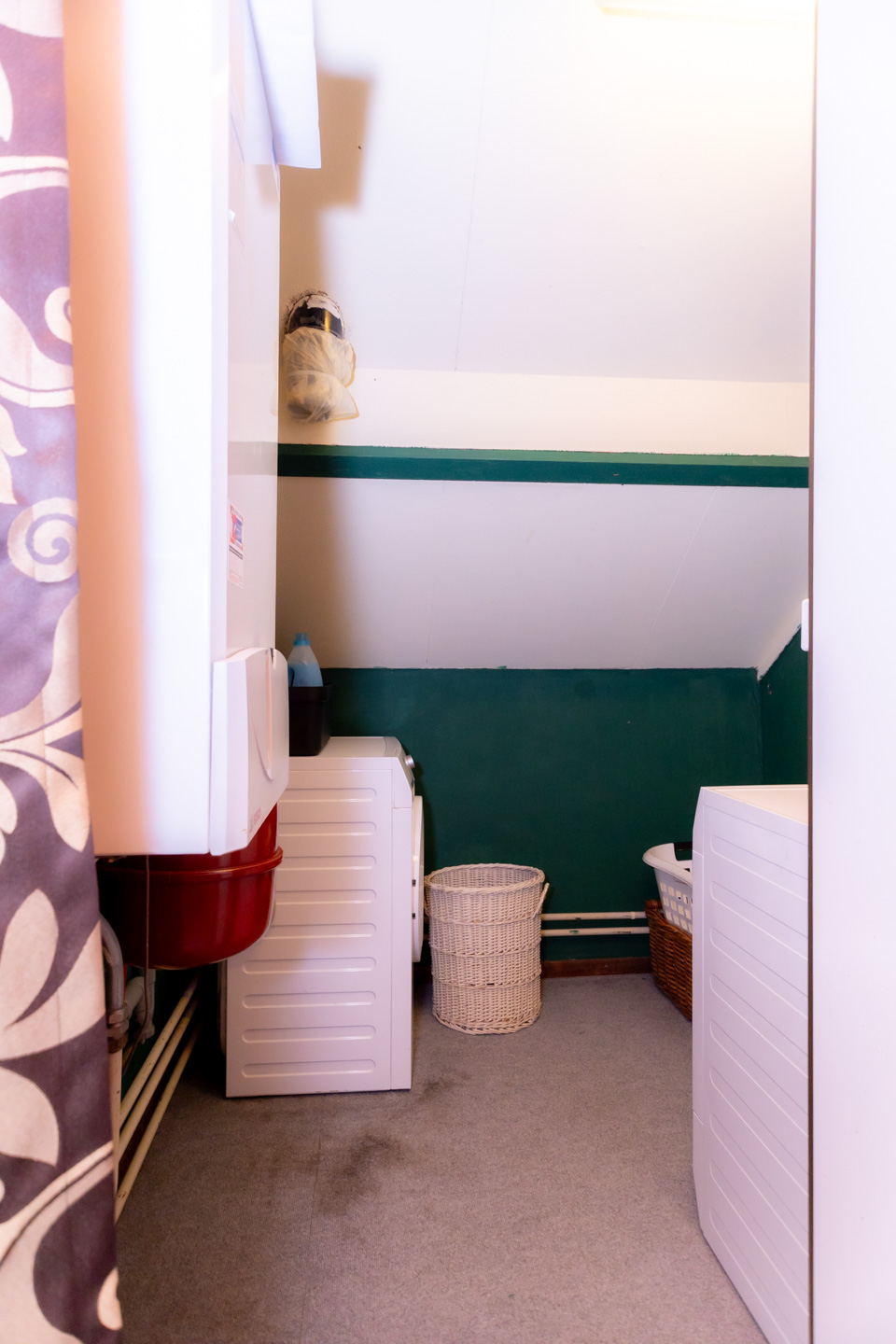 De tweede verdieping is bereikbaar via een vaste trap en biedt nog eens twee volwaardige slaapkamers. Op de overloop vind je een grote ruimte met de wasmachineopstelling, cv-installatie (2009) en veel handige bergruimte.