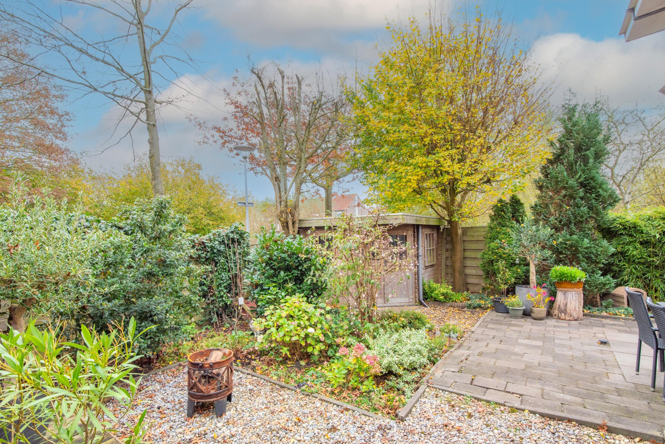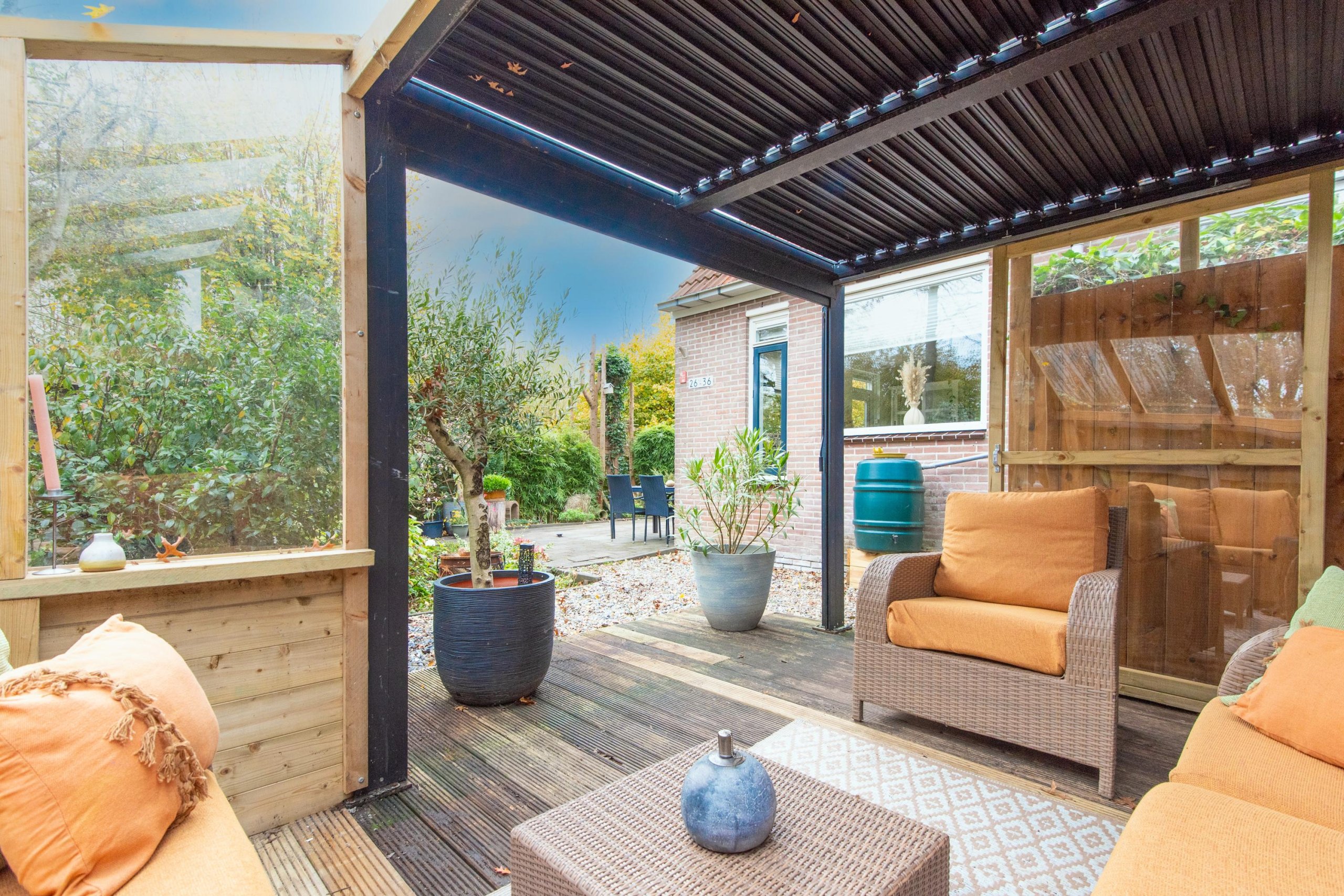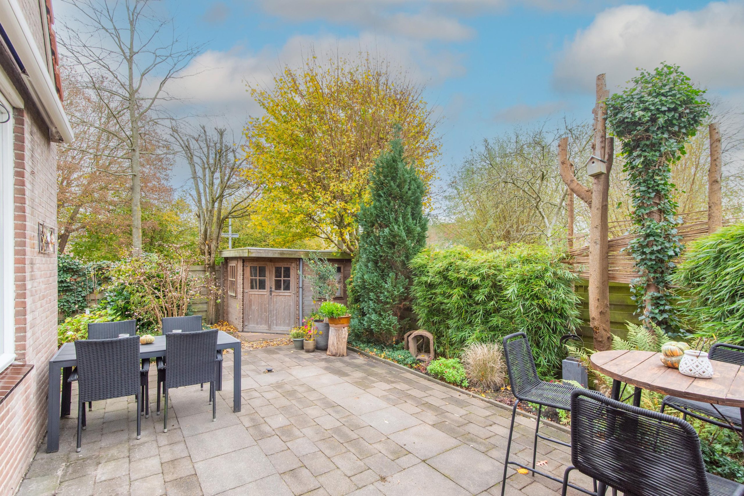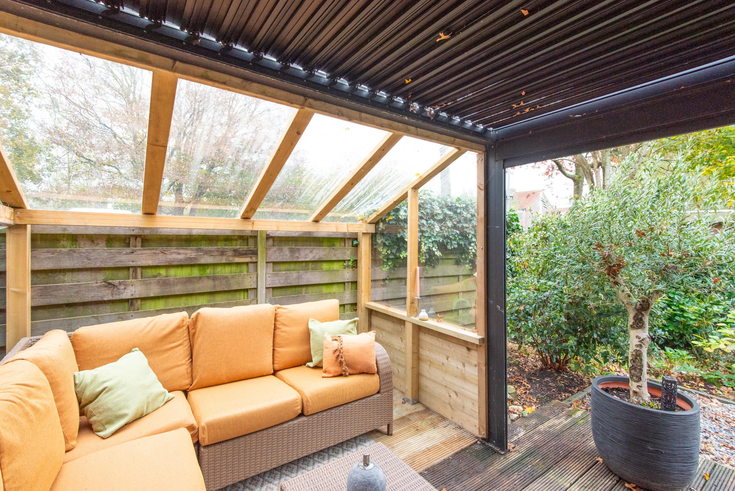 De achtertuin ligt gunstig op het zuidoosten en is een heerlijke plek om van het buitenleven te genieten. Dankzij de groene beschutting zit je hier heerlijk beschut en geniet je veel privacy. De tuin beschikt over meerdere terrassen, een houten berging en een heerlijke veranda.