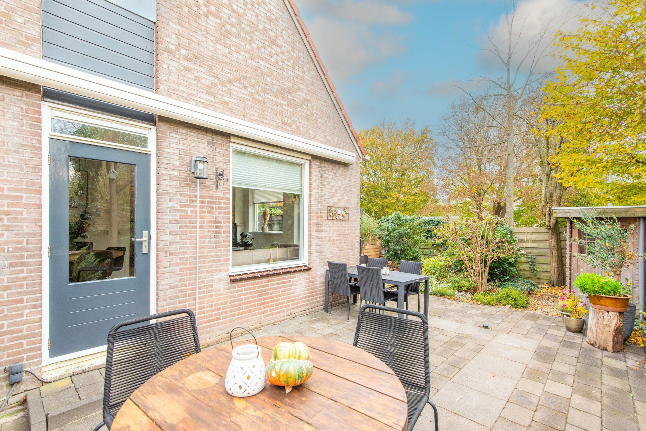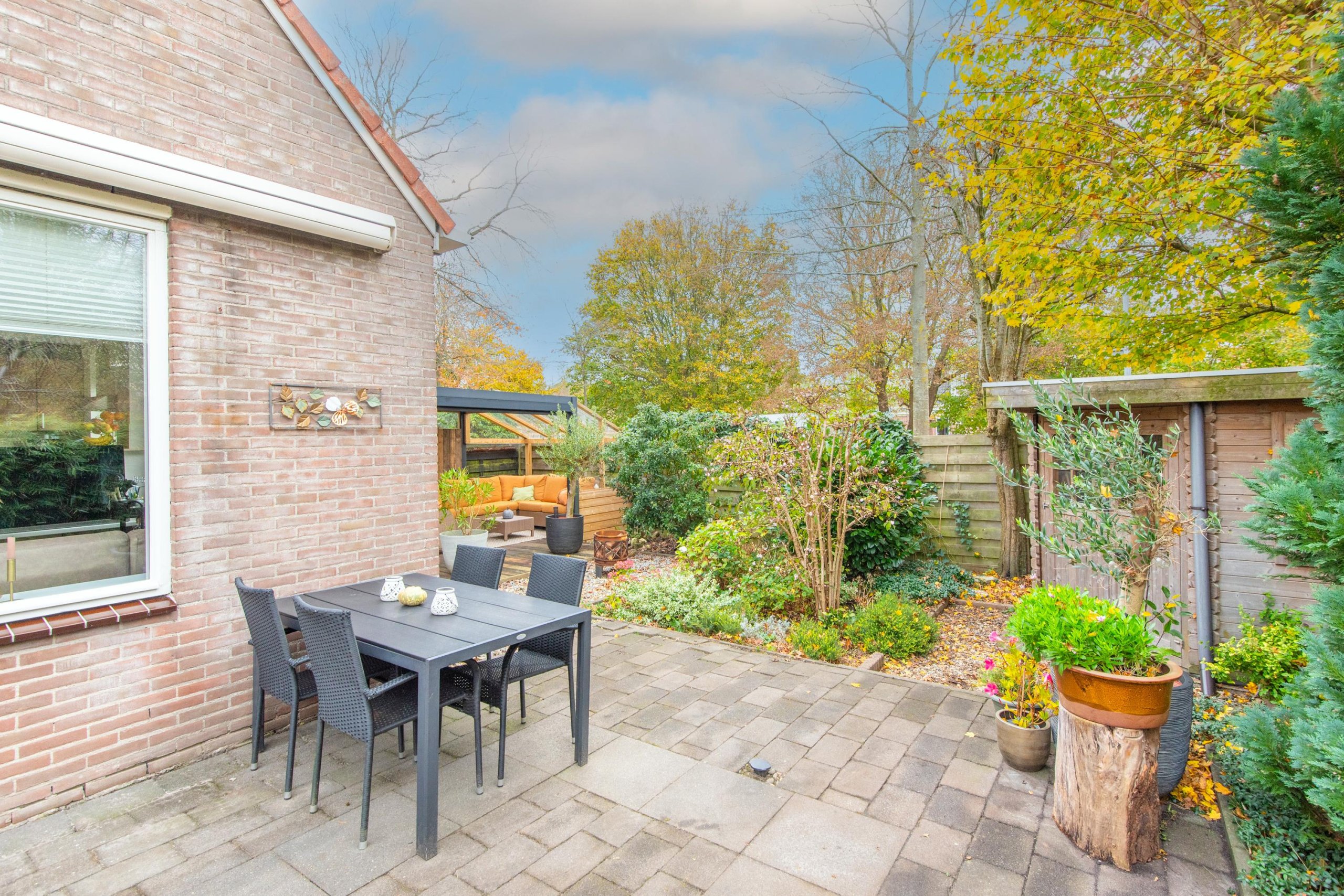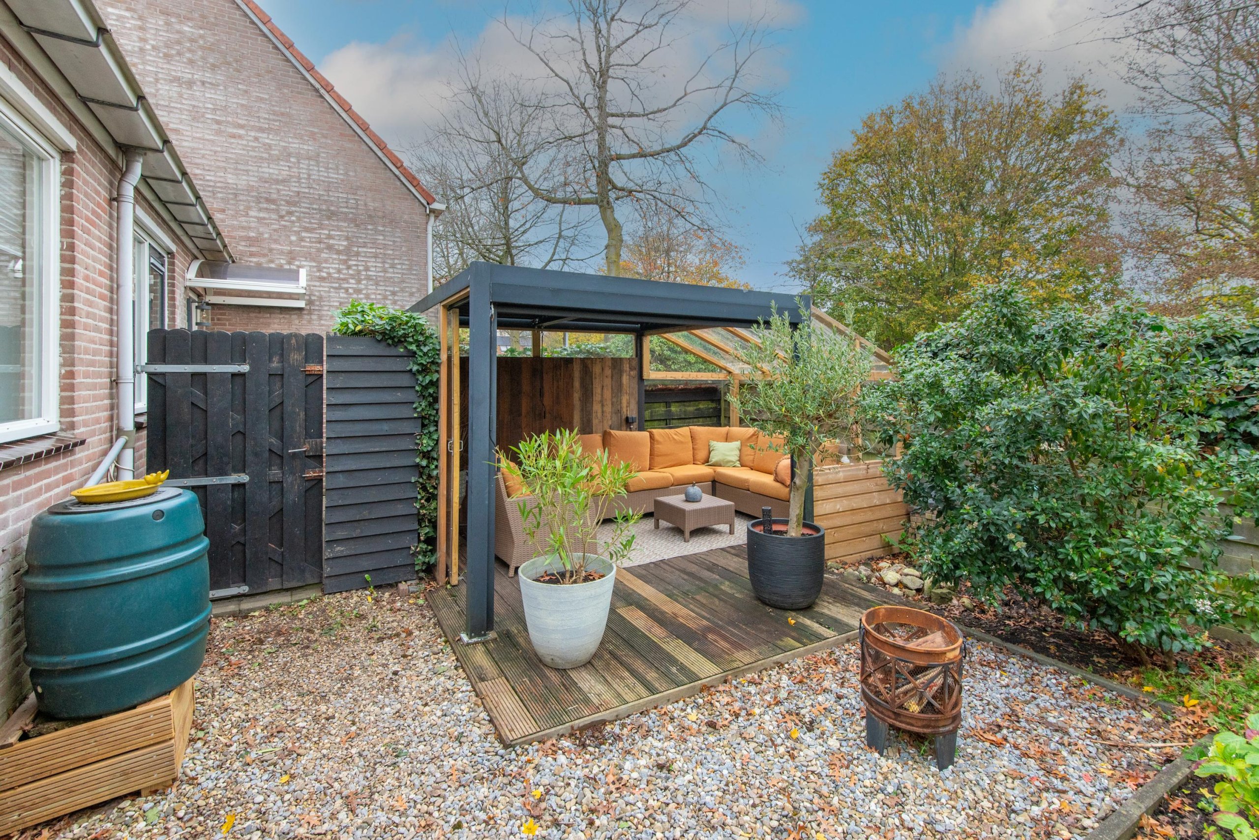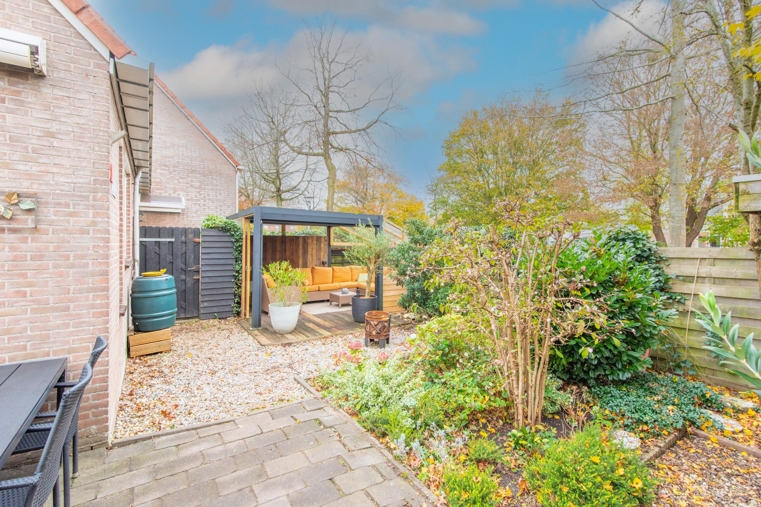 De achtertuin ligt gunstig op het zuidoosten en is een heerlijke plek om van het buitenleven te genieten. Dankzij de groene beschutting zit je hier heerlijk beschut en geniet je veel privacy. De tuin beschikt over meerdere terrassen, een houten berging en een heerlijke veranda.