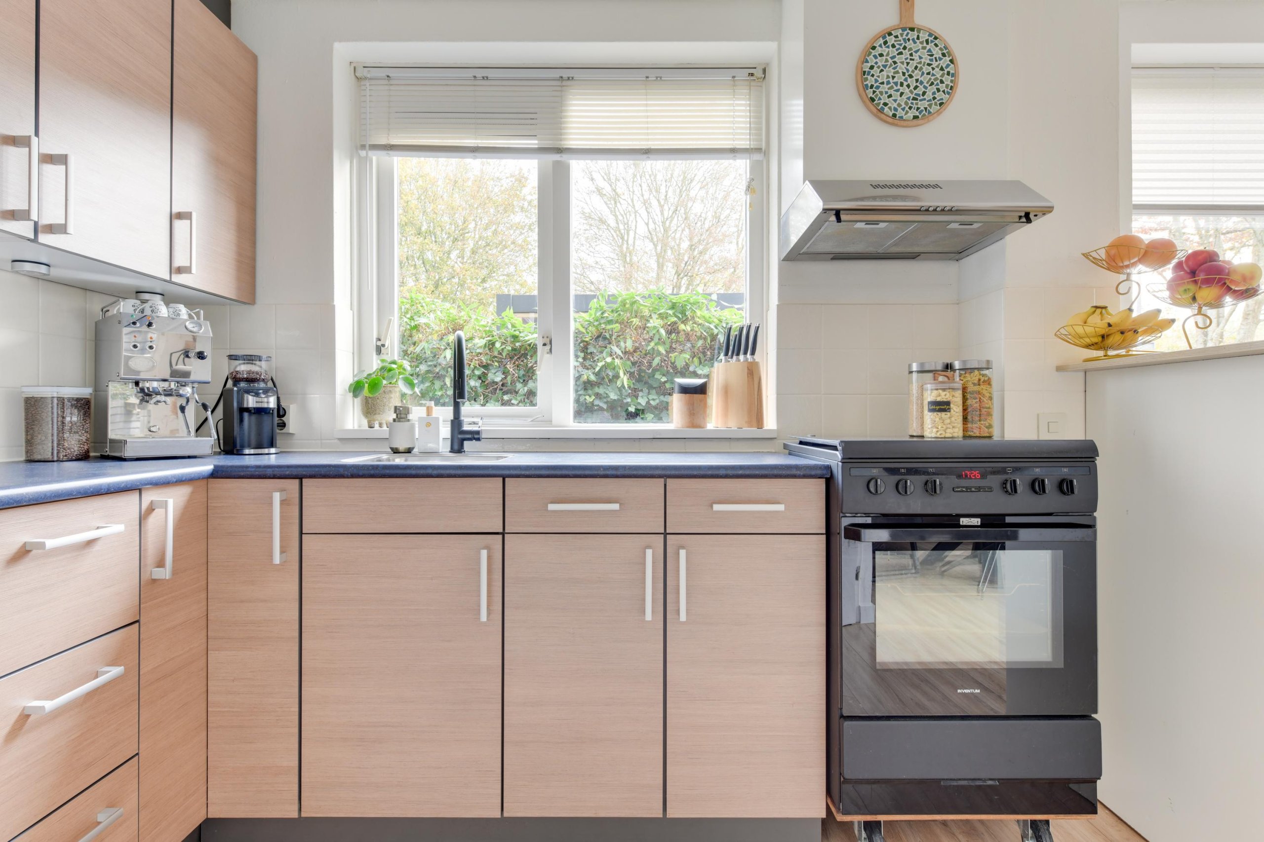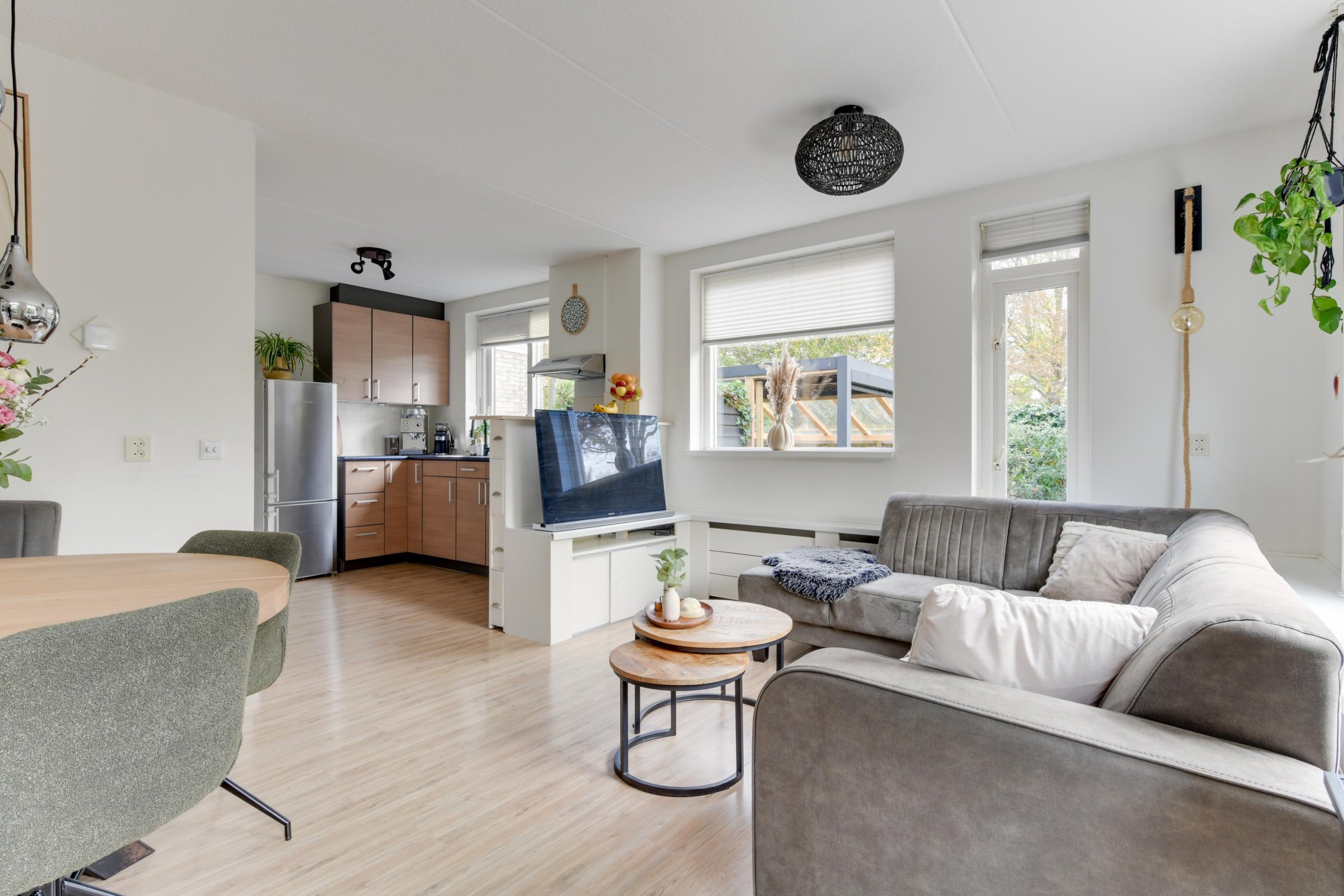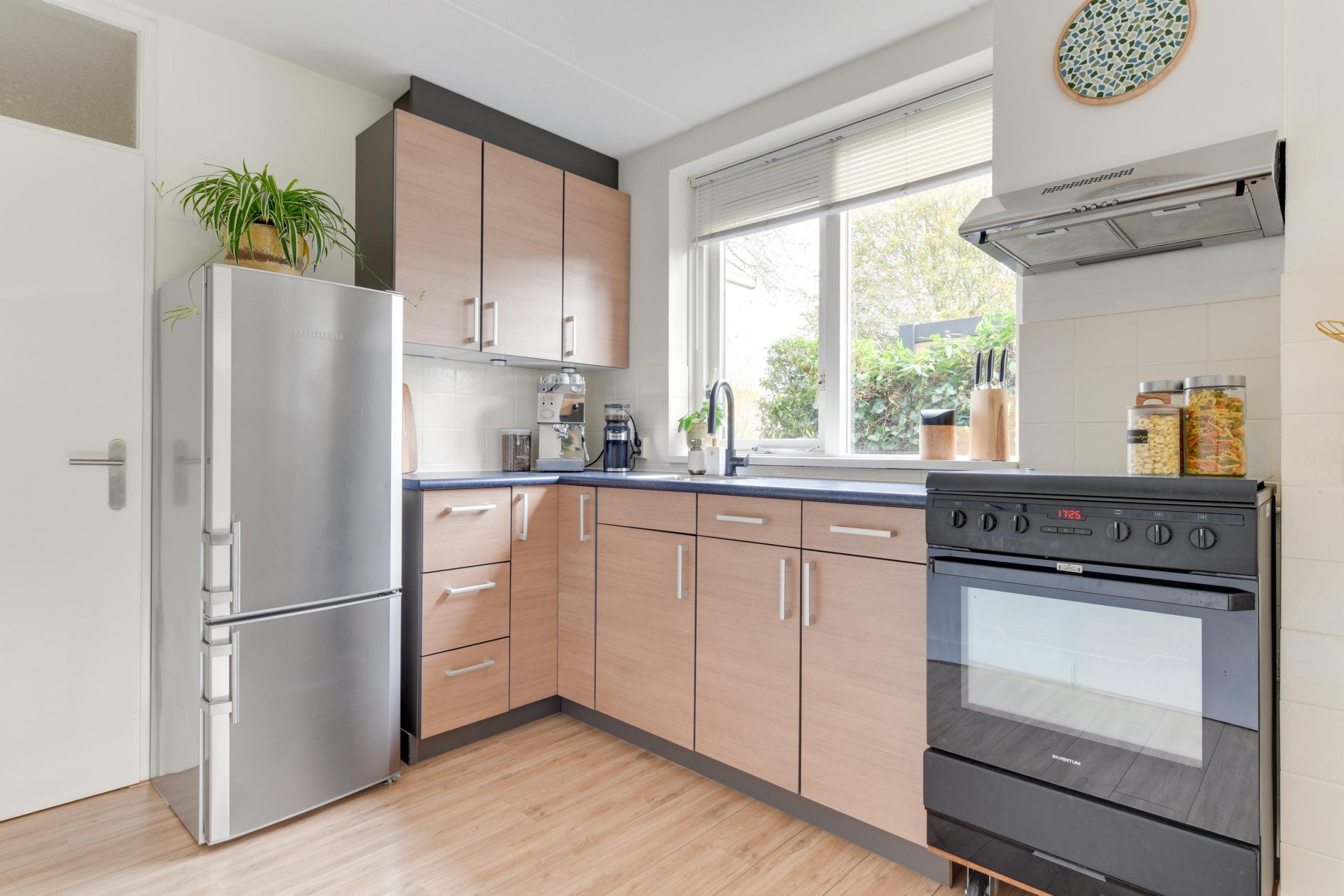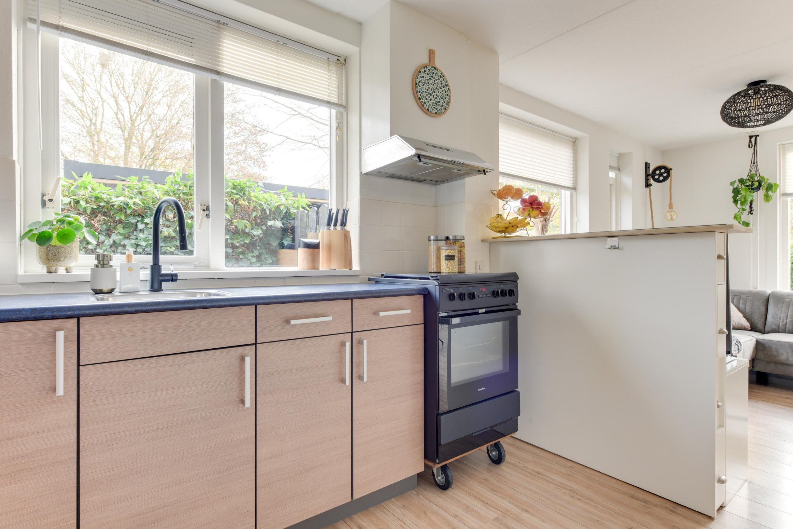 Via de entree aan de voorzijde kom je binnen in de hal met meterkast. Vanuit hier bereik je de keuken of de ruime bijkeuken met aansluitingen voor de wasmachine en droger. De woonkamer is licht en sfeervol, met grote ramen die zorgen voor veel daglicht. Dankzij de nette afwerking en de laminaatvloer heeft de ruimte een moderne uitstraling. De keuken in hoekopstelling is voorzien van een gasfornuis met oven, afzuigkap en een losse koel- vries combinatie. Via de eethoek heb je toegang tot de zonnige tuin.