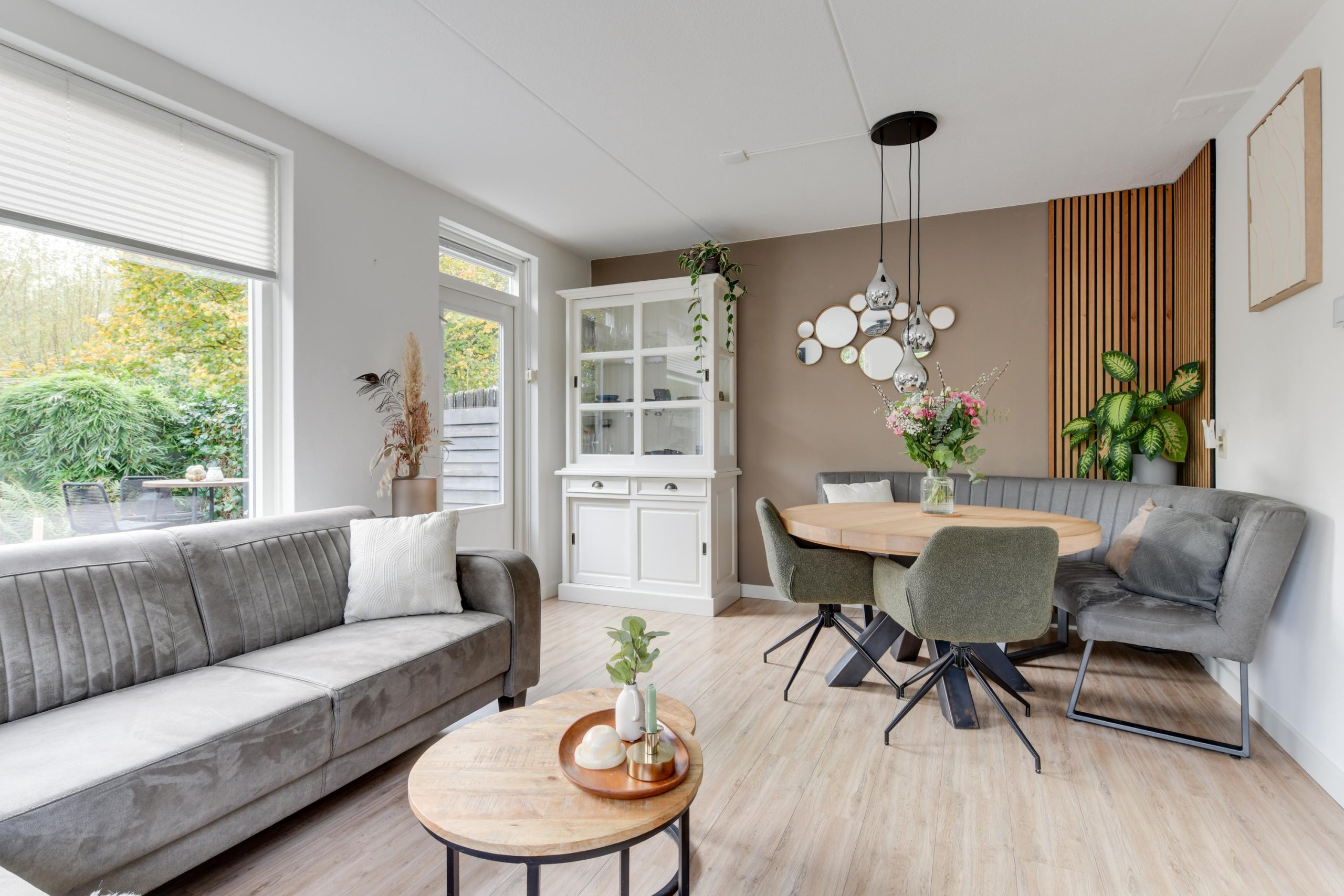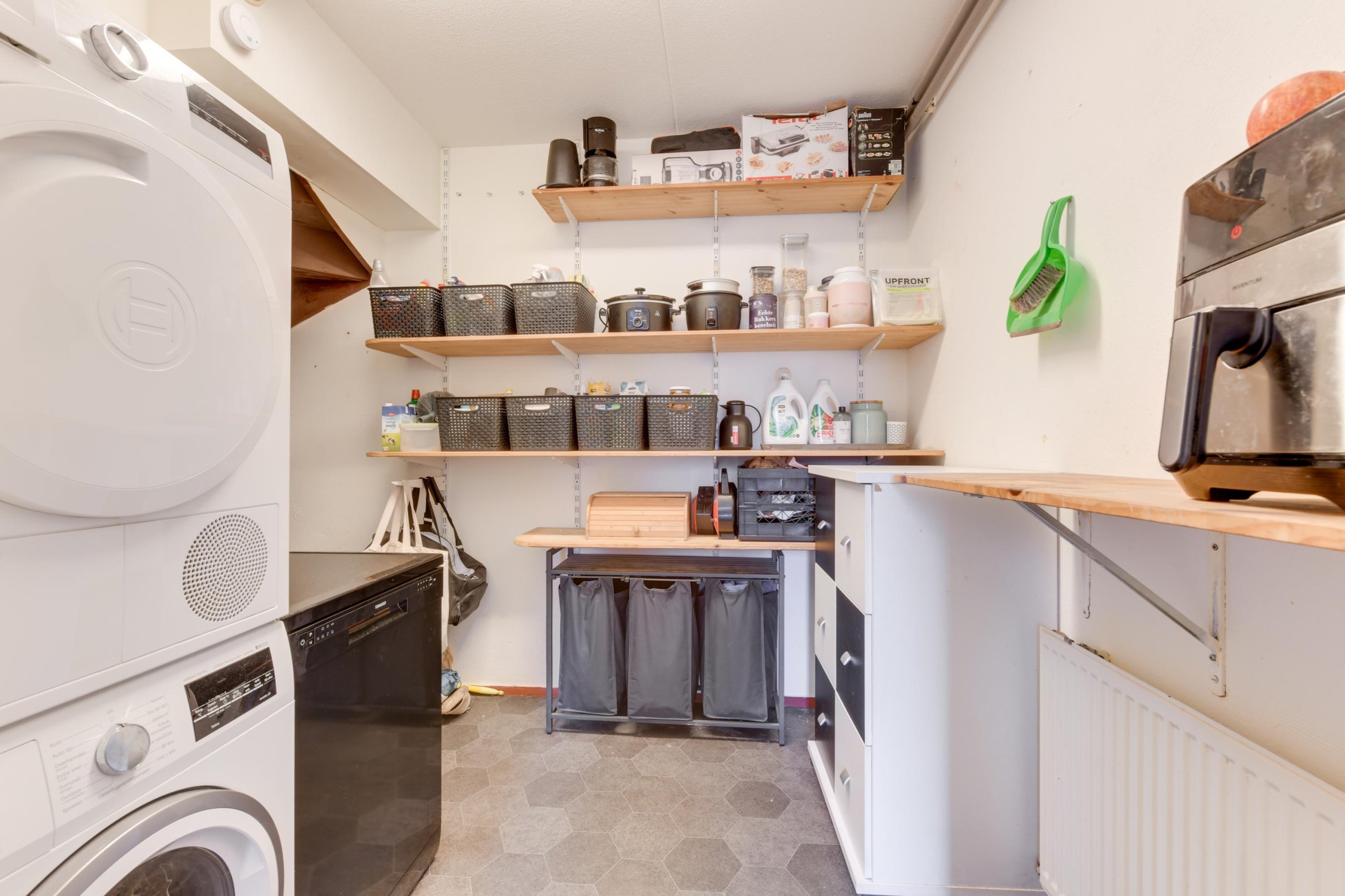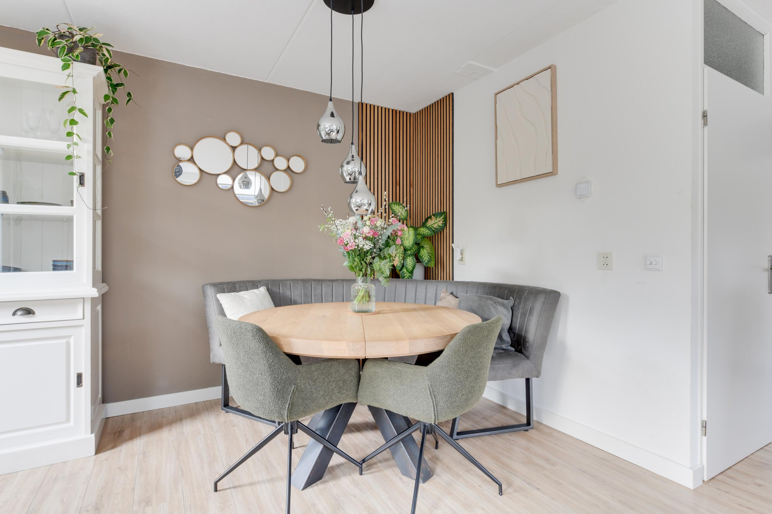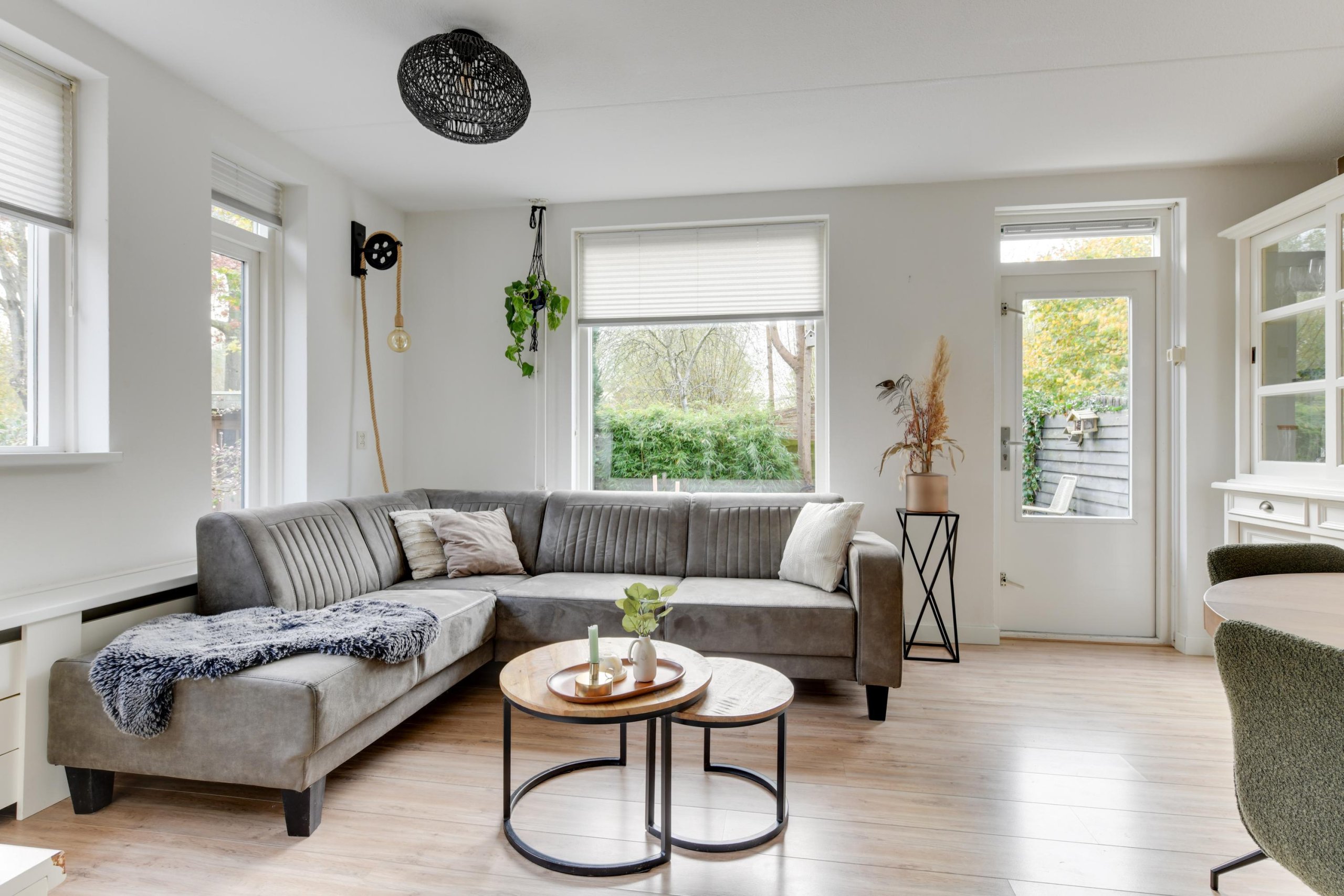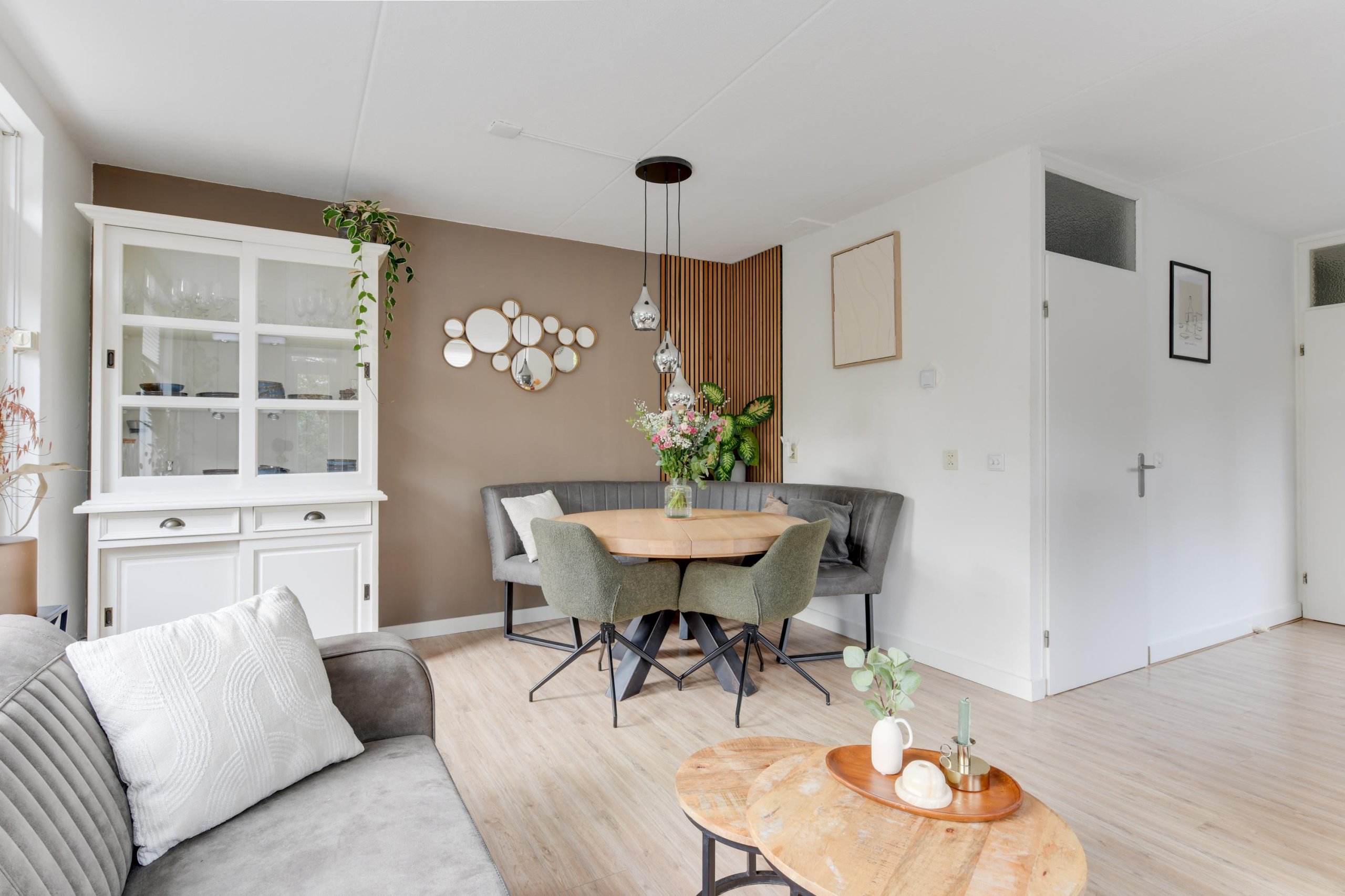 Via de entree aan de voorzijde kom je binnen in de hal met meterkast. Vanuit hier bereik je de keuken of de ruime bijkeuken met aansluitingen voor de wasmachine en droger. De woonkamer is licht en sfeervol, met grote ramen die zorgen voor veel daglicht. Dankzij de nette afwerking en de laminaatvloer heeft de ruimte een moderne uitstraling. De keuken in hoekopstelling is voorzien van een gasfornuis met oven, afzuigkap en een losse koel- vries combinatie. Via de eethoek heb je toegang tot de zonnige tuin.