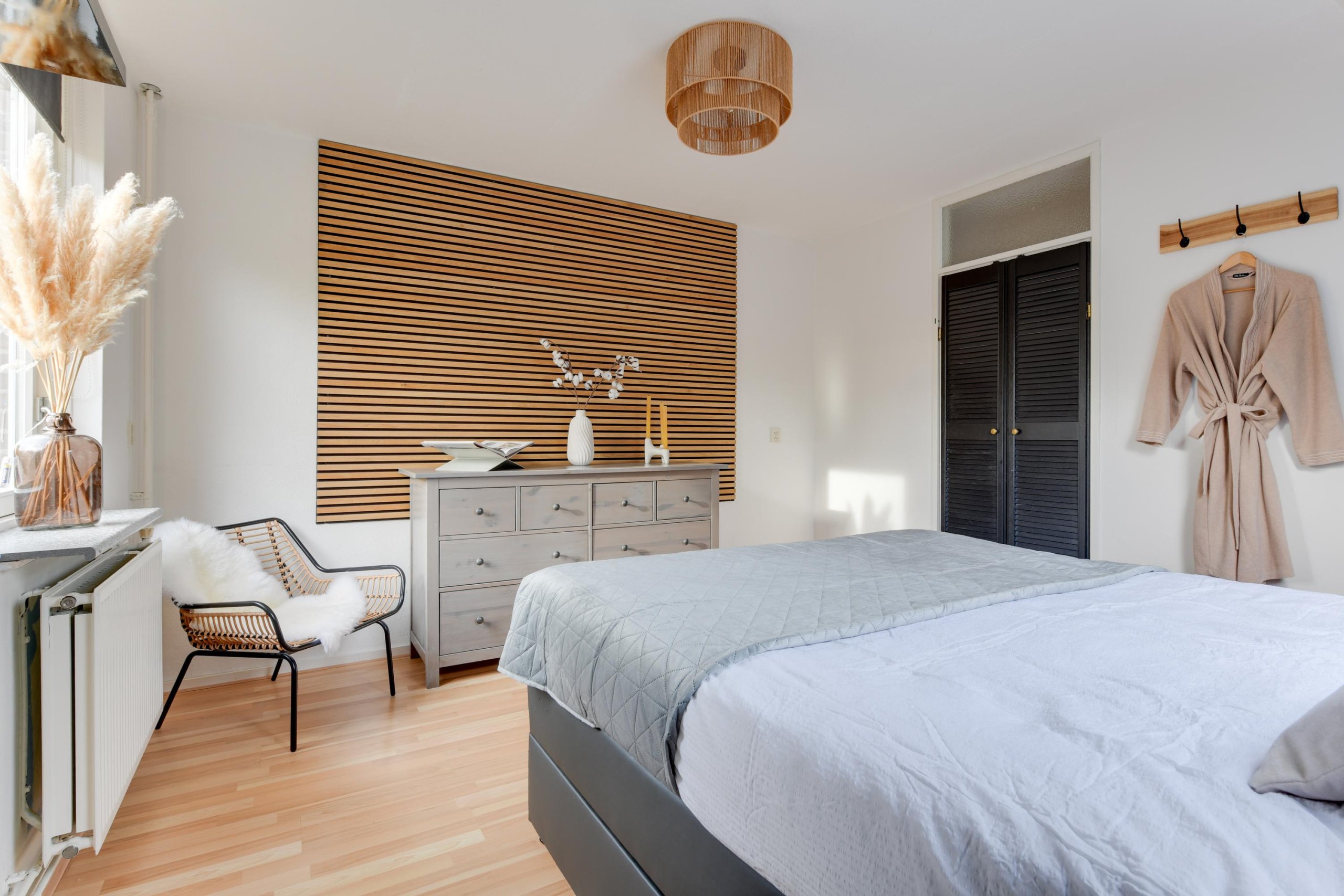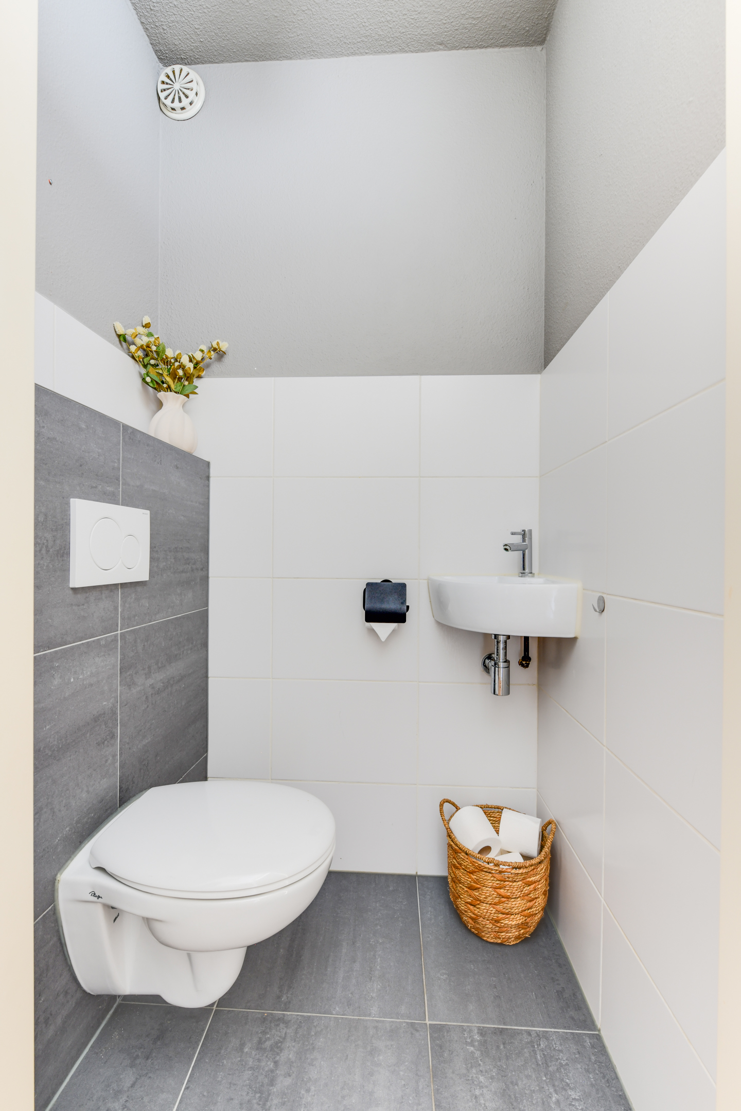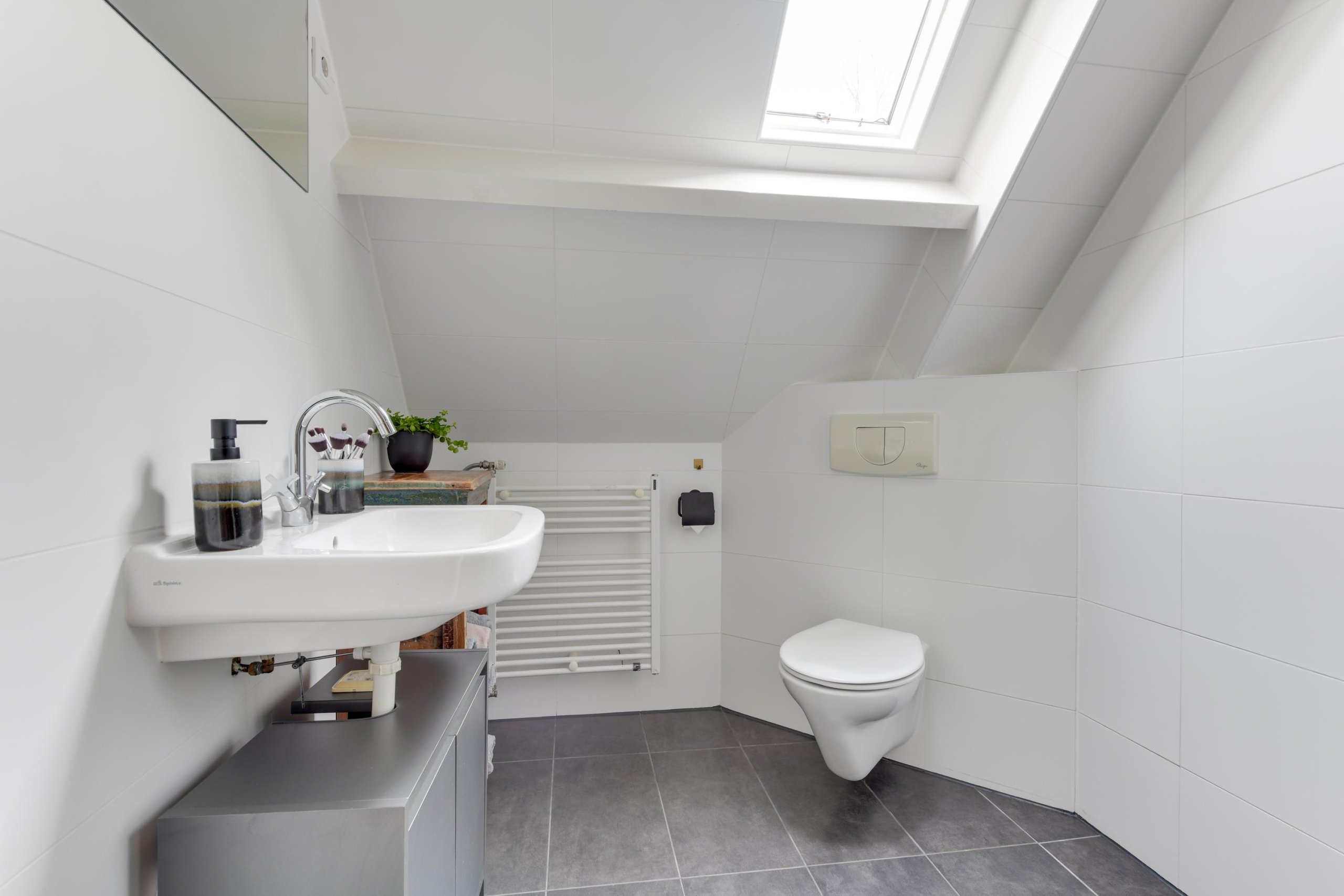Op de eerste verdieping vind je twee ruime slaapkamers, beide netjes afgewerkt en voorzien van een laminaatvloer. De gemoderniseerde badkamer beschikt over een inloopdouche, wastafel, tweede toilet en designradiator.