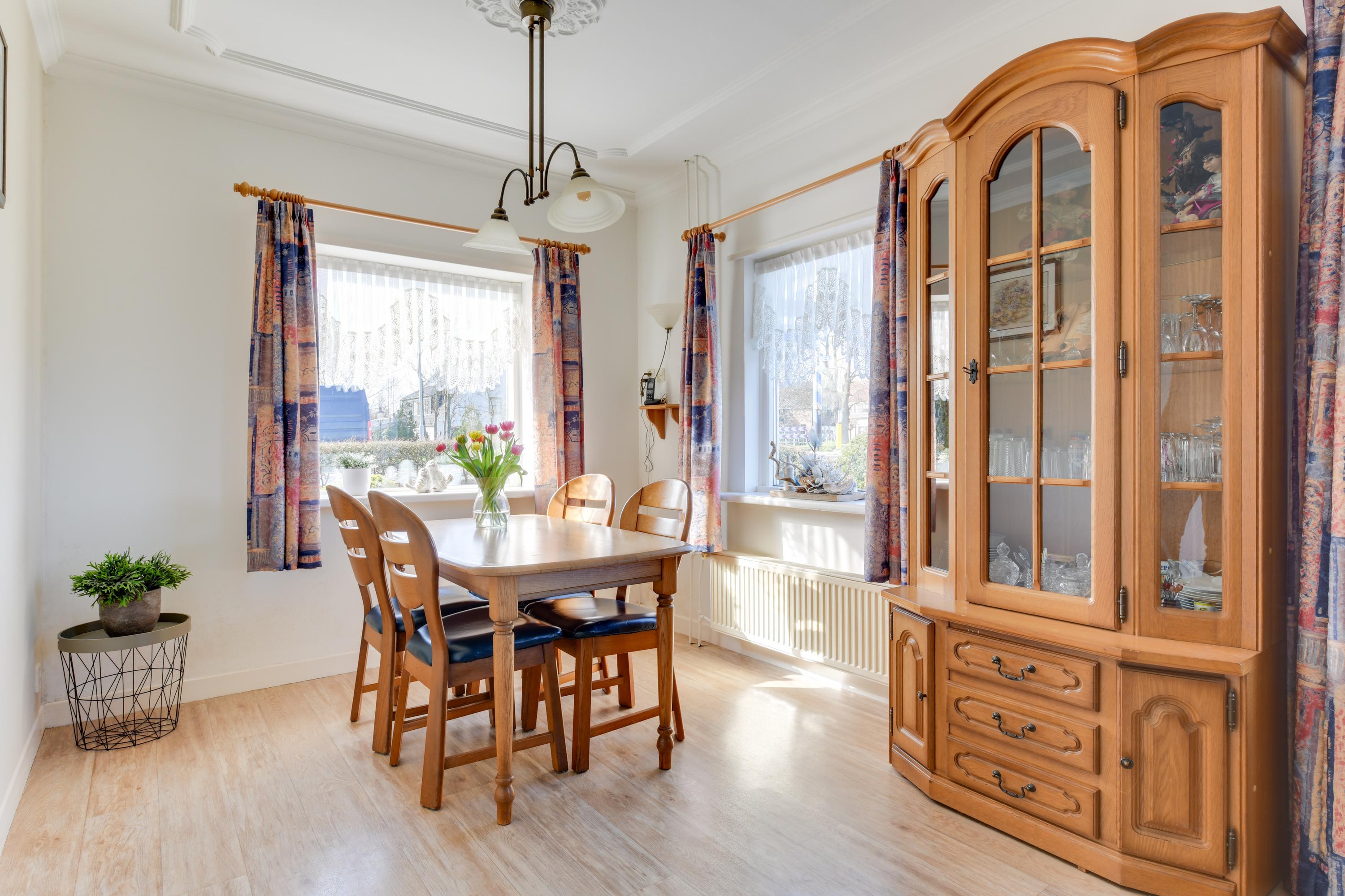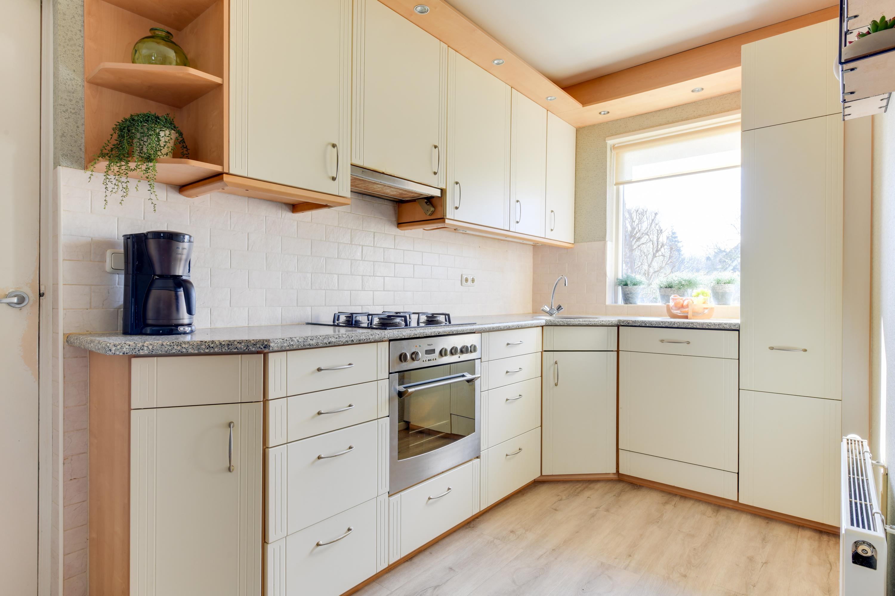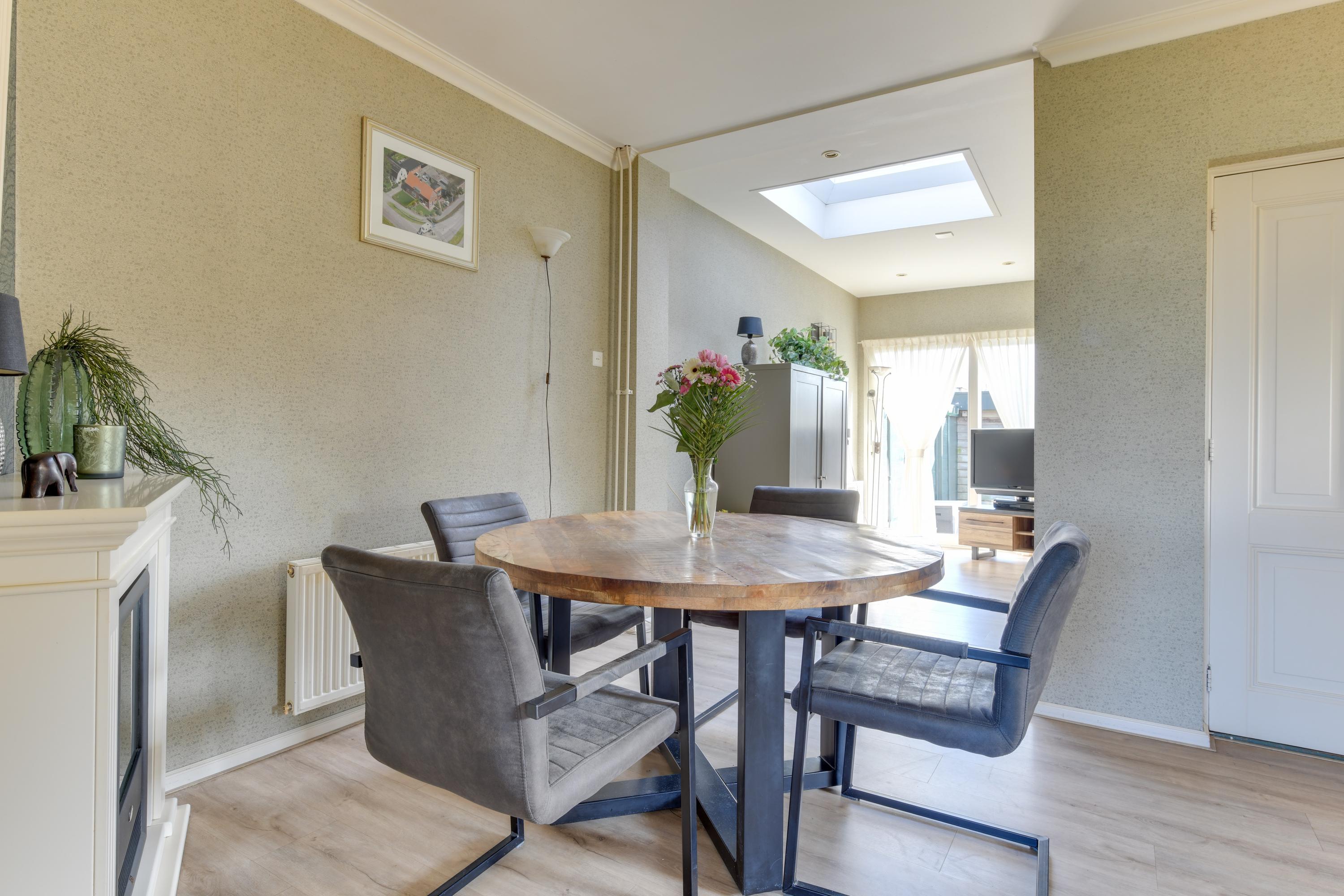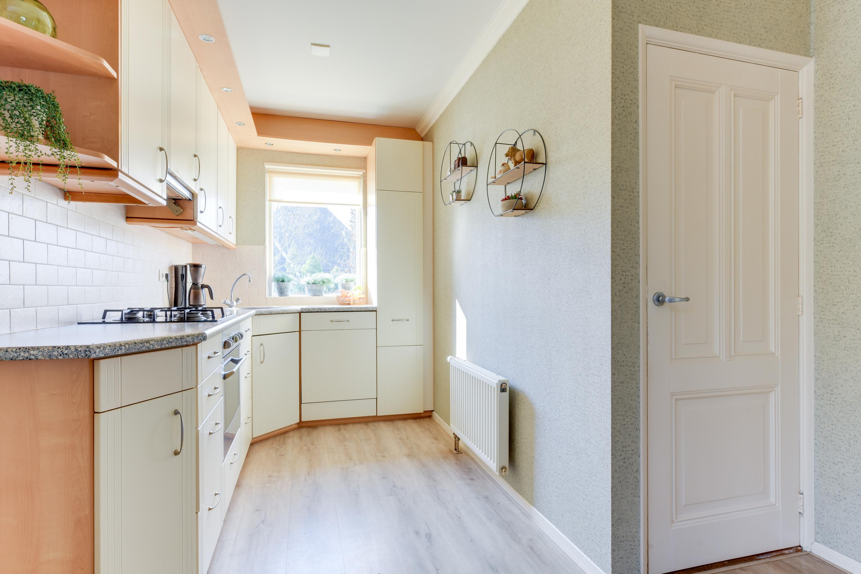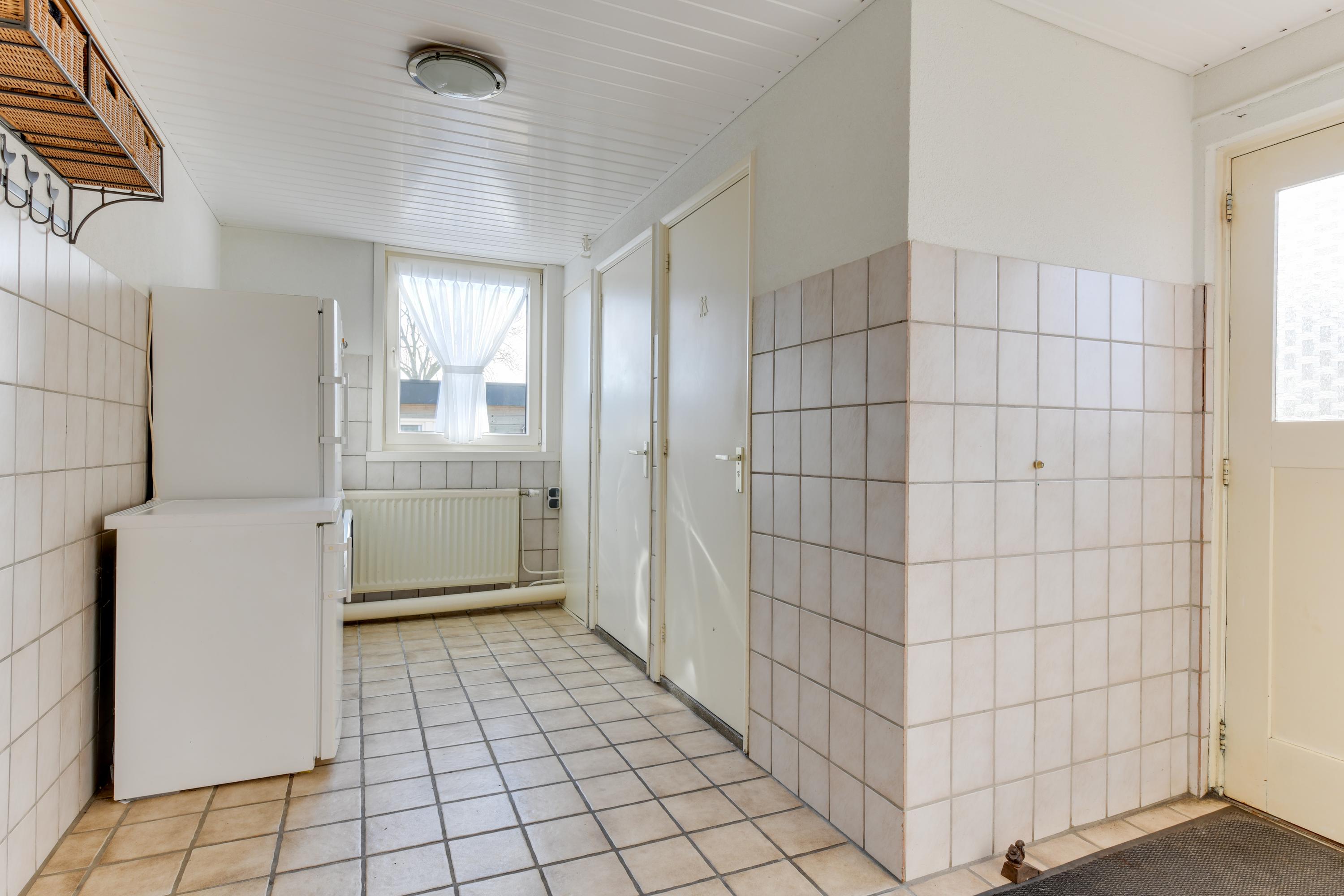 Via de entree bereik je de hal met daarin de meterkast en de trap naar de eerste etage. Vervolgens kom je in de grote woonkeuken met de keuken in een hoekopstelling voorzien van allerlei inbouwapparatuur. Daarnaast is er volop ruimte voor een grote eettafel en een eventueel een hobby/studeer ruimte. Via de schuifpui is de achtertuin bereikbaar. In de aangrenzende bijkeuken is het toilet gesitueerd, een kast met de CV ketel en de aansluitingen van de wasmachine zijn daar gerealiseerd.