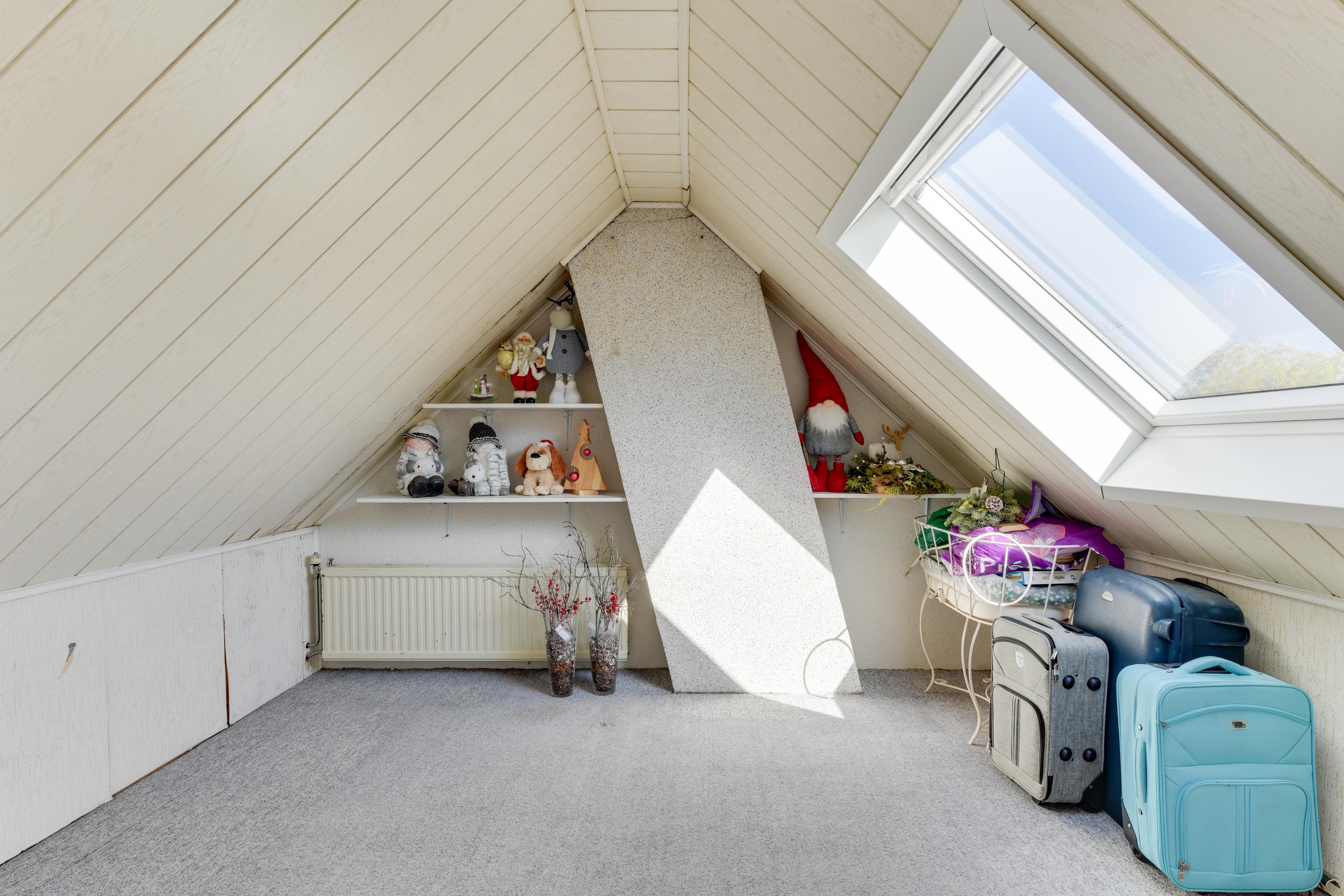 Via een vaste trap is de tweede etage bereikbaar. Deze is verdeeld in een voorzolder met opbergruimte en een 5e slaapkamer met opbergruimte en een dakraam.